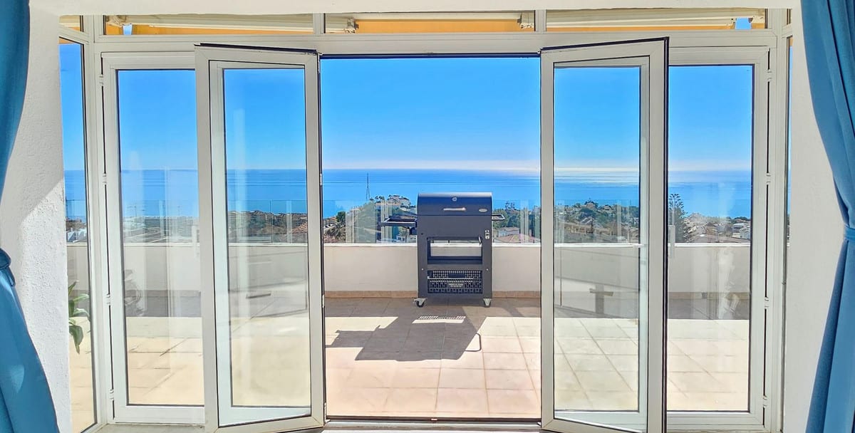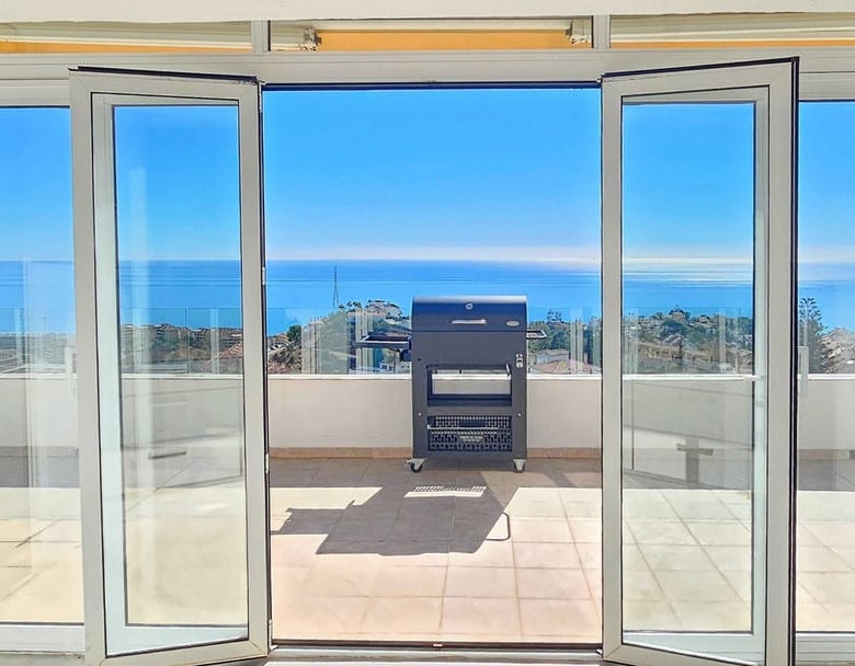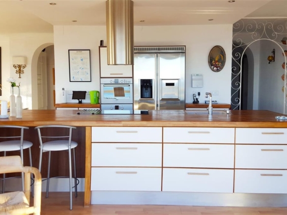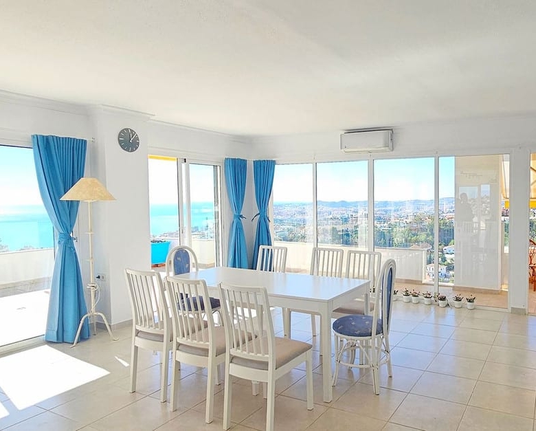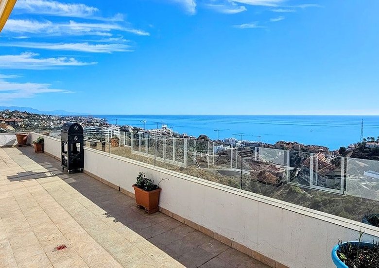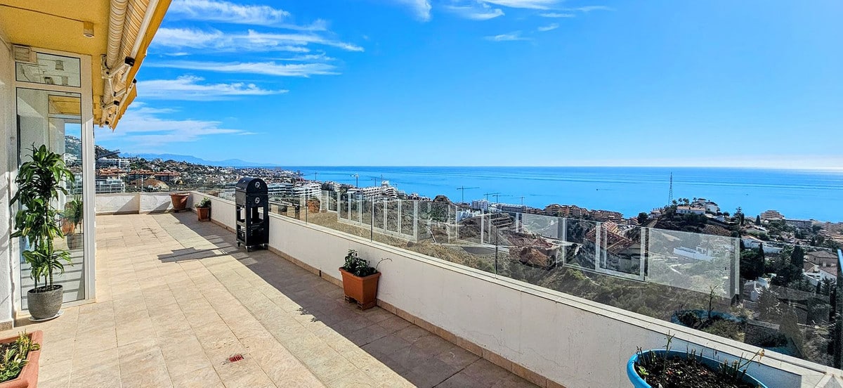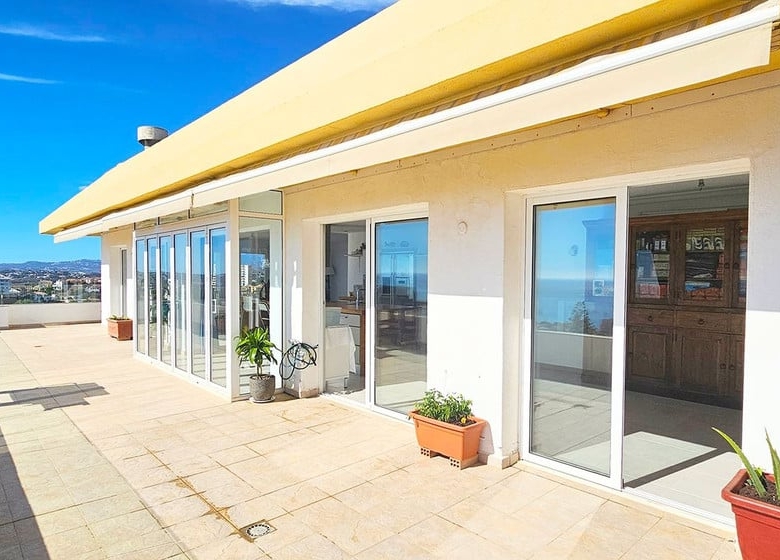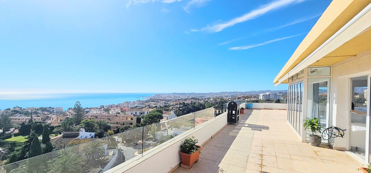 Stunning penthouse offering breathtaking panoramic coastal views, located just a short drive from the beach and in close proximity to the town, restaurants, and all conveniences.This three-bedroom penthouse emerged from the combination of two separate units, creating an exceptionally spacious lounge area. The recent refurbishment has transformed the apartment into an open and airy living space, where the kitchen, living, and dining areas seamlessly blend together. The large terrace provides the perfect vantage point to savor the picturesque views of the coastline.