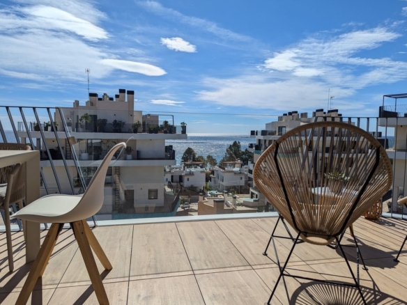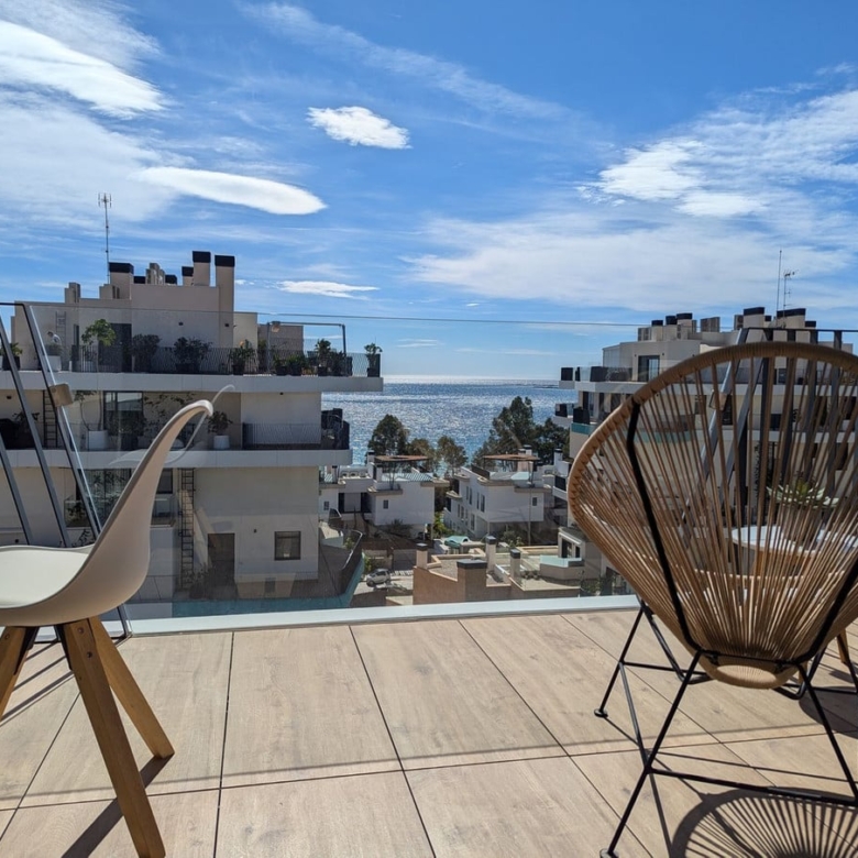 Experience the epitome of luxury and comfort at Allonbay Village, nestled in the heart of the Costa Blanca. This stunning two-story penthouse, located in the picturesque town of Villajoyosa, offers breathtaking panoramic views of the Mediterranean Sea. Just 50 meters from the beach, this home is an oasis of tranquility and sophistication.