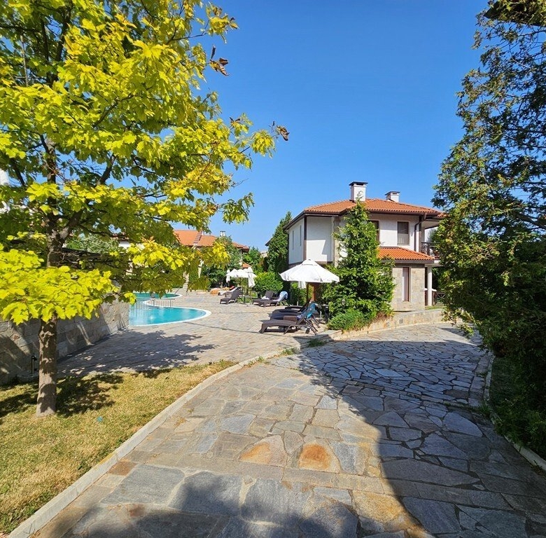 The complex is located 1 km from the famous Sunny Beach and simultaneously in a secluded, quiet place away from the hustle and bustle. The distance to Burgas International Airport is 30 km. Nearby is the resort of St. Vlas, the village of Kosharitsa, and the Kalinata Reserve, known for its unique location and flora. The complex is suitable for beach lovers and those seeking tranquility due to its proximity to Sunny Beach. The houses are situated in a fenced and secured area with video surveillance and are designed for year-round comfort and family-friendly living. Infrastructure: