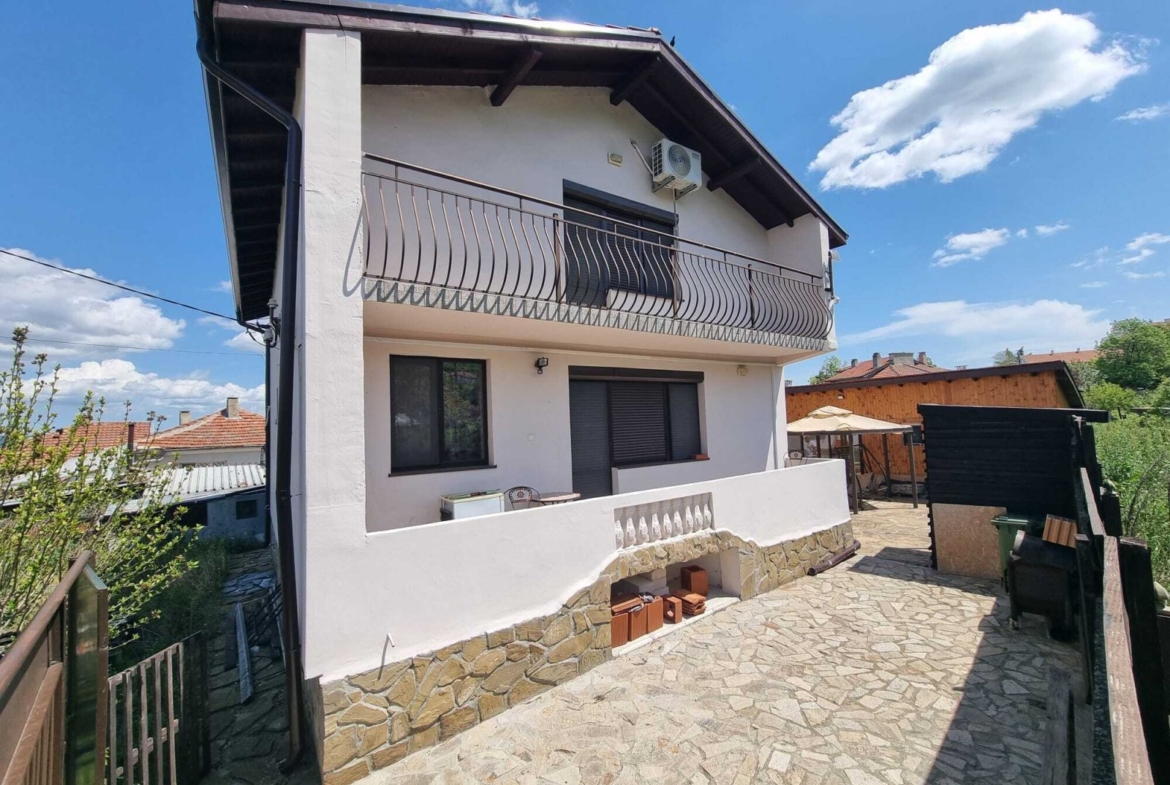 The house is located at the foot of the mountain, with a lovely panorama. The area of the house is 162 m², excluding the basement. On the ground floor, there is: an entrance hall, a living room with an electric fireplace, a kitchen, a dining room with access to a large terrace, a bedroom, and a bathroom with a shower. On the second floor: a hallway, 2 bedrooms, one of which has a dressing room and a terrace, and a bathroom with a shower. The basement contains a heating boiler and a new heating boiler. The house is in excellent condition, equipped with new furniture, appliances, and air conditioning, and is fully ready for comfortable living! Each room is equipped with a radiator. Internet, television, security system, and video surveillance are installed. Water and electricity are centralized.