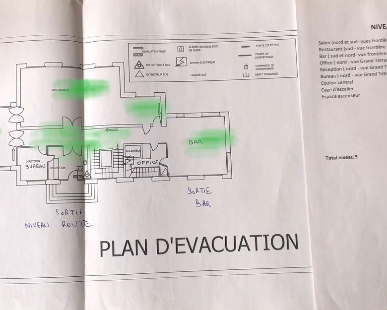 The lower floors of the building comprise unused hotel rooms (currently used for storage), owner’s apartment, service areas (boiler room, lift mechanism)and a second restaurant (currently used as a workshop)