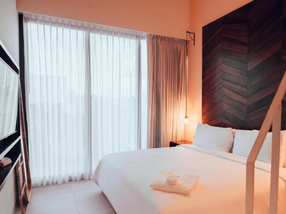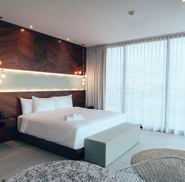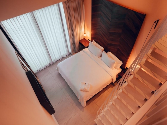 The property features a rooftop terrace with a pool, bar, and restaurant—perfect for relaxing above the city while enjoying tropical views. Each guest room is thoughtfully designed with comfort and flexibility in mind, catering to solo travelers, couples, families, and groups.