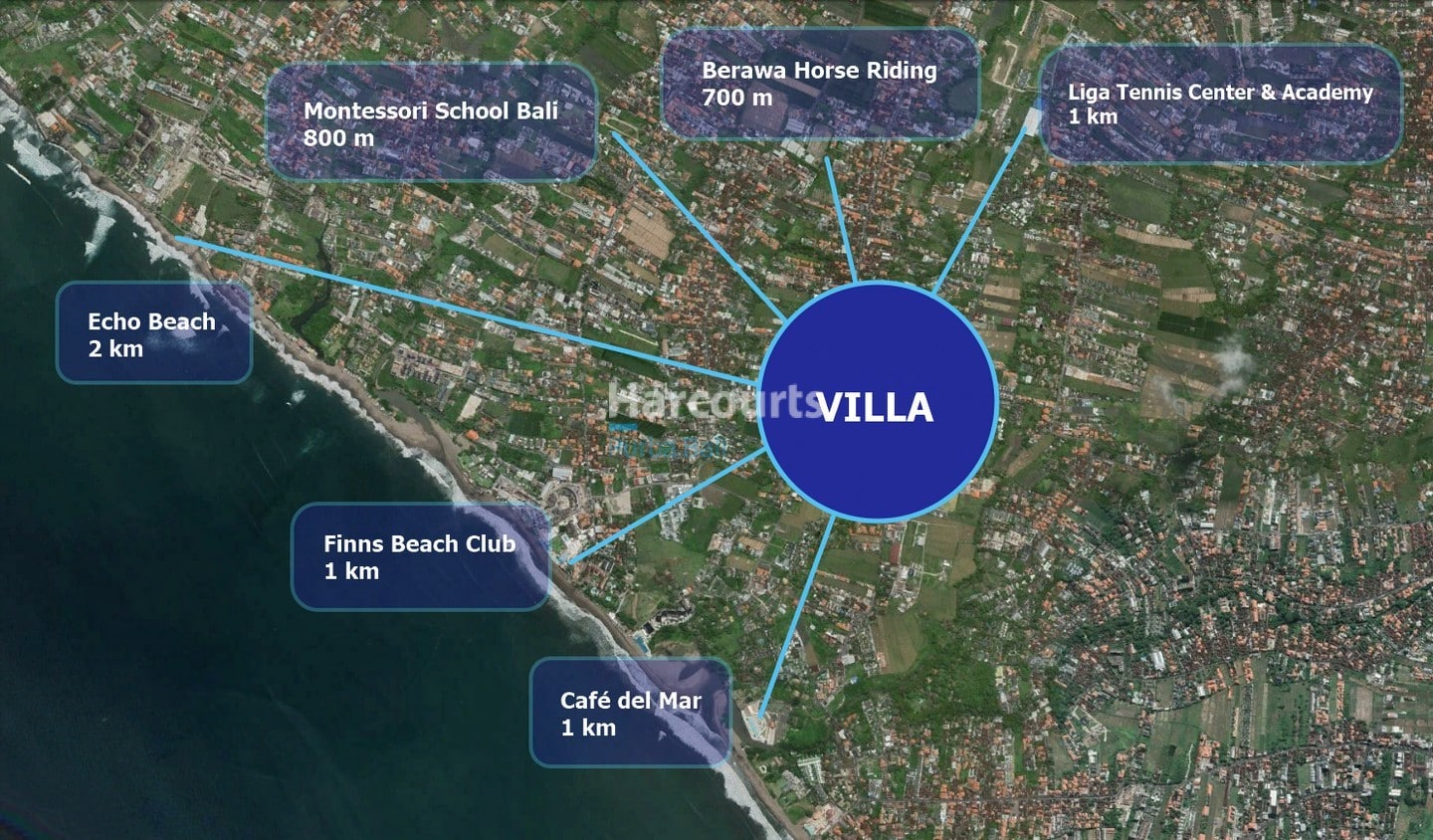 With completion expected in May 2023, this is a golden opportunity to acquire a FREEHOLD, brand new, modern villa in Canggu’s most sought after address. With Berawa Beach just moments away and facilities such as international Schools, Recreational Club, Beachclubs and plentiful dining options just outside its door step, expect the property to sell out fast.With a land area of 300 sqm, the north facing villa has a property size of 305 sqm on 2 levels. The villa has 1 master bedroom and 3 additional bedrooms. The villa also includes an enclosed living area, a fully fitted kitchen, ensuite bathrooms, carparking and an 10m x 3m swimming pool. Access is via a 5-metre road.For those looking for a residence, this villa would be ideal for a family wanting to move to an established neighbourhood close to facilities. The villa is also perfect for those who are looking for a great investment property for both short- and long-term rentals in an area that will continue to see soaring capital appreciation.Nearby: Milk & Madu Restaurant 50 m, Finns Recreation Club 200 m, Souphoria Restaurant 800 m, Finns Beachclub 1 km, Atlas Beachclub 1 km, Montessori School 1 km, Liga Tennis Center & Academy 1 km, Cafe del Mar, Old Man’s Bar & Resto 1.8 km, Deus Ex Machina 1.8 km, La Brisa Bali 2.5 km.Price Reduced iDR 15.000.000.000, was iDR 17.000.000.000Leasehold Price: iDR 9.500.000.000/30 year lease