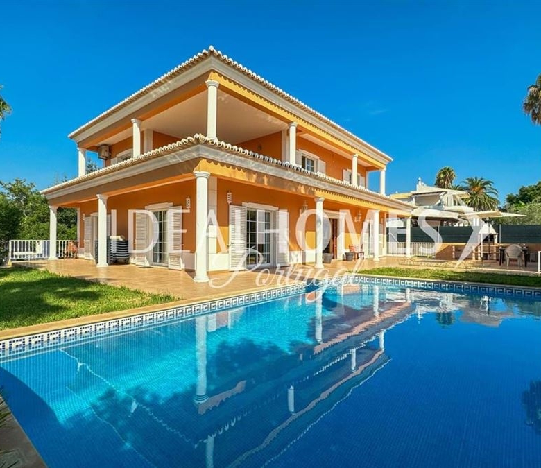 This four bedroom villa for sale is located on the outskirts of Almancil, just a short drive away from all essential amenities and the pristine beaches of Vale do Lobo and Quinta do Lago.Spread across two floors, this villa comprises a large living / dining room featuring a cosy fireplace, a fully equipped kitchen complete with a second dining area, four spacious bedrooms, four bathrooms and a L-shaped terrace on the first floor that provides distant sea views.Outside, this property offers expansive lounge areas for relaxation, a dedicated BBQ space for entertaining, and a large swimming pool, all surrounded by meticulously manicured gardens and fruit trees.Perfectly situated on the southern outskirts of Almancil, this villa grants effortless access to pristine beaches, world-renowned golf courses, and a diverse array of amenities, all just a short drive away. Additionally, the property finds itself a mere eight kilometres from the breathtaking ‘Ria Formosa Natural Park,’ and just a 20 minute drive from Faro International Airport.