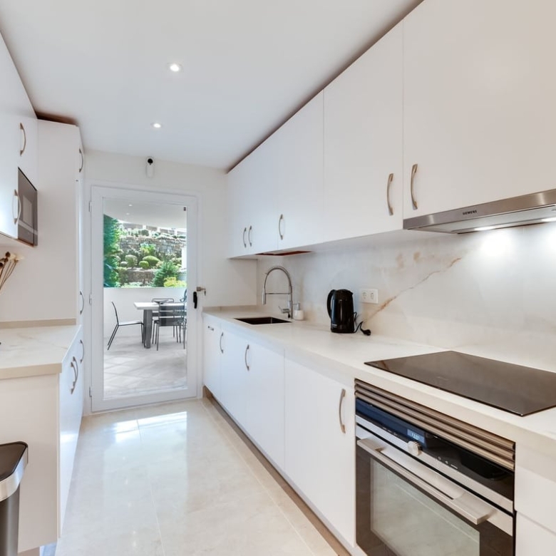 Beautiful and very spacious 4 bedroom ground floor apartment 350sqm inc terraces located in the desirable five star urbanisation Capanes del Golf, Benahavis. The apartments are distributed in quiet villas, surrounded by 50.000sqm of mediterranean landscaped gardens.