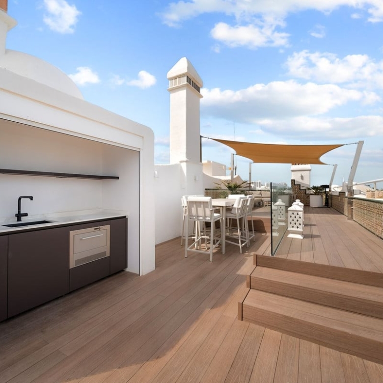 One of the jewels of this property is its private solarium which is accessed from the living room. Here you can enjoy the sun all day long, relax in the chill-out area and take advantage of the outdoor kitchen to prepare delicious meals al fresco. This space is perfect for socializing with friends and family while taking in the stunning panoramic views.