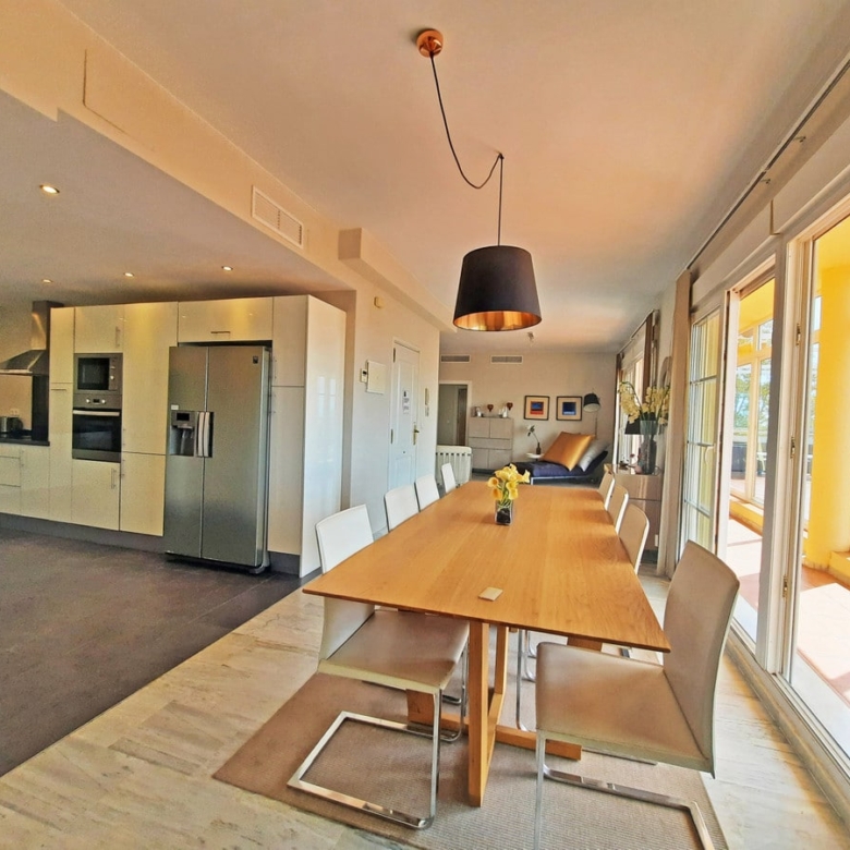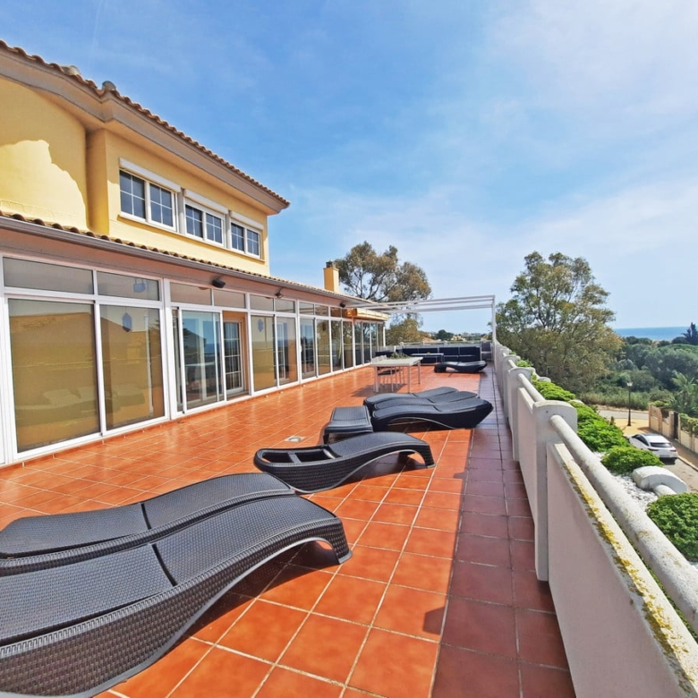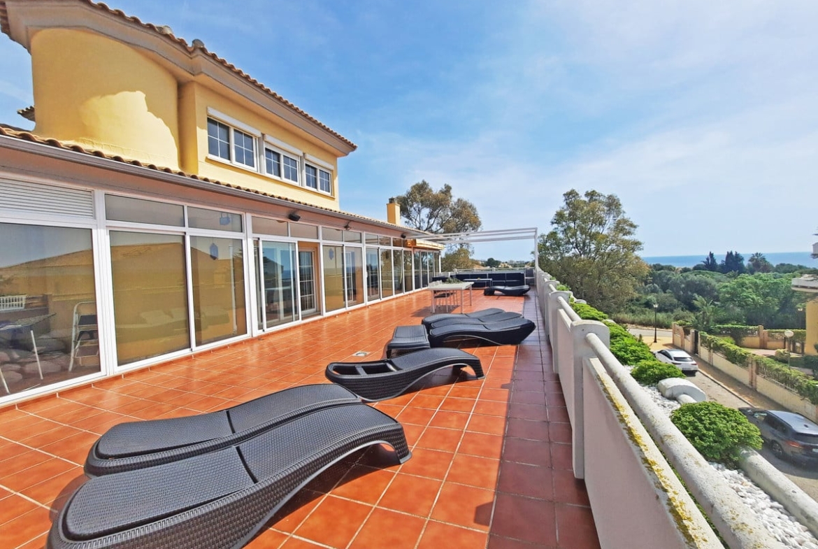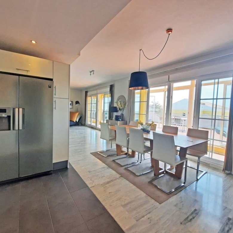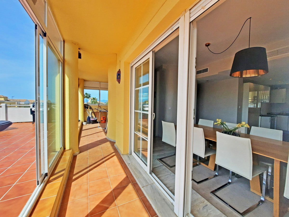 This penthouse is one of those unique properties due to its size, with 4 bedrooms, 3 on the first level, one of them ensuite and the other 2 are sharing a bathroom and another ensuite upstairs.The living-dining room is a large open space with a fully fitted kitchen and you can enjoy a sea view from everywhere. The massive terrace is partly glazed but mainly open and it’s facing the south to enjoy a maximum of sun. The apartment is also overlooking the communal swimming pool on the side. it’s sold as seen and it would benefit of some TLC but the potential is amazing. There is a parking space underground and more easy parking outside around the Urbanization. You can walk to the beautiful sandy beach of Cabopino and its lovely harbor.