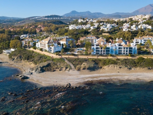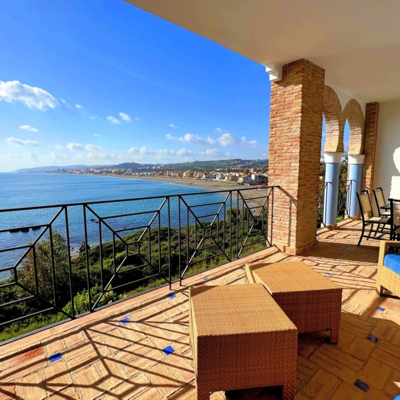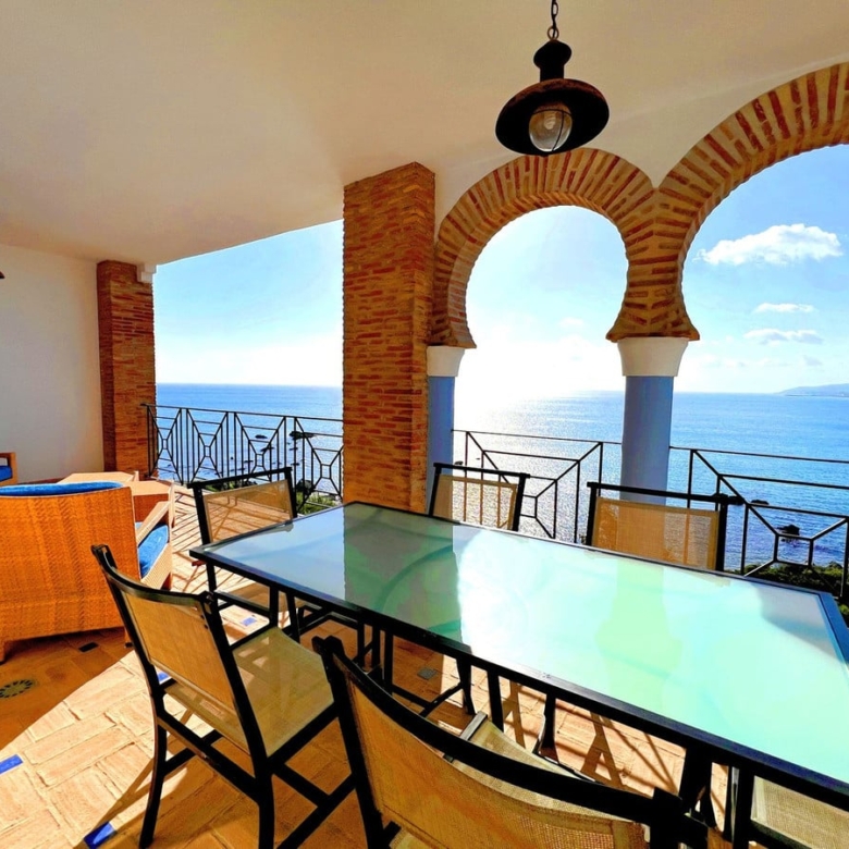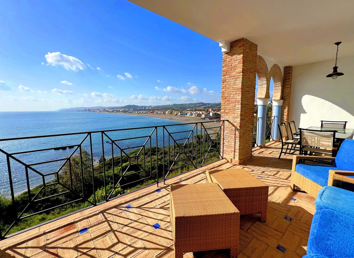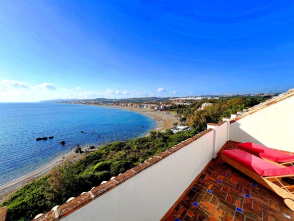 NEW TO THE MARKET: STUNNiNG 4-BEDROOM DUPLEX PENTHOUSE with SPECTACULAR ViEWS OF THE SEA, THE BEACH, GiBRALTAR, AND AFRiCA. Located in the beautiful Bay of Casares, next to an ancient Arabic tower, within a prestigious FRONTLiNE BEACH complex featuring a unique design that blends Andalusian and Arabic styles. Surrounded by lush gardens, magnificent pools, decorative fountains, and relaxing areas designed for ultimate enjoyment. Within walking distance of 3 different beaches, 2 renowned restaurants, and the exclusive Finca Cortesin beach club. Strategically situated between Estepona and the charming Puerto de la Duquesa and Sabinillas, just a 5-minute drive away, offering access to a wide variety of shops, restaurants, leisure activities, and prestigious golf courses, including the renowned Finca Cortesin, host of the prestigious Solheim Cup 2023. The gated community provides 24-hour security and video surveillance, ensuring peace of mind and safety. This property includes 4 spacious parking spaces and 4 convenient storage rooms, making it not only a dream residence but also an outstanding investment opportunity with high rental potential. A unique property that must be seen!