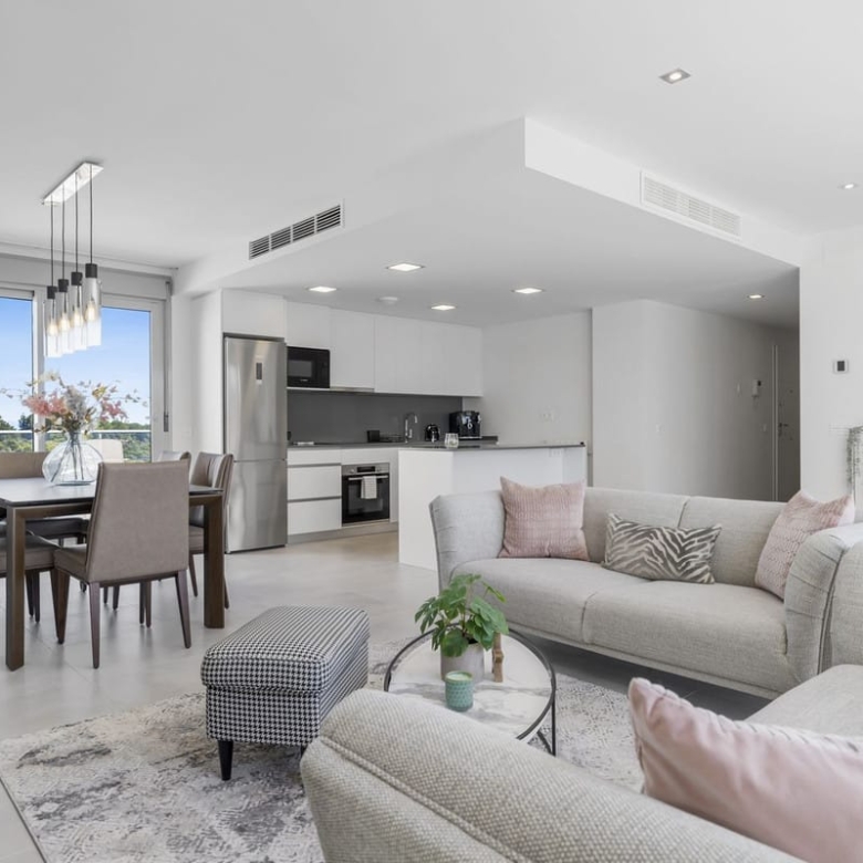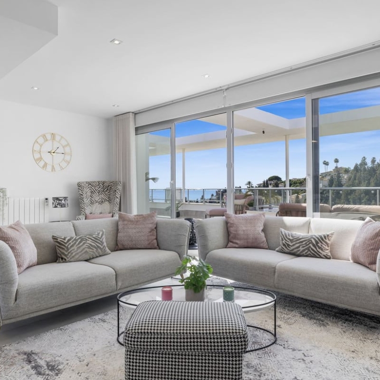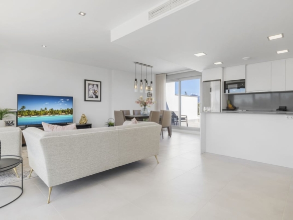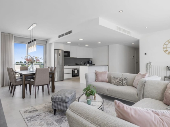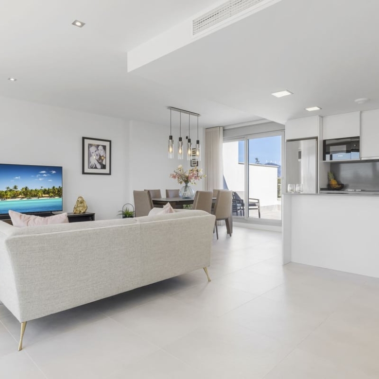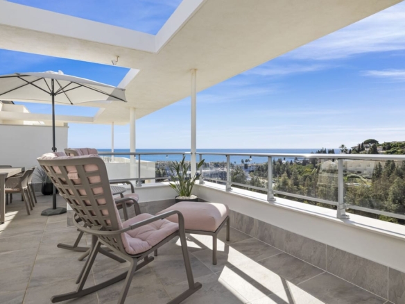 Welcome to Casa Natura – An exquisite 4-bedroom penthouse in show home condition. Discover the pinnacle of luxury living in this impeccable single-level penthouse, offering 4 spacious bedrooms, each with its own private terrace with a mixture of breathtaking views including sea, forest, golf, mountain and even the snowy Sierra Nevada. With 3 bathrooms (including 2 en-suite) and an elegant open-plan kitchen with a central island, this residence is crafted for modern living and entertaining.