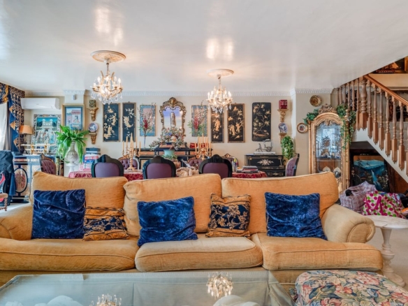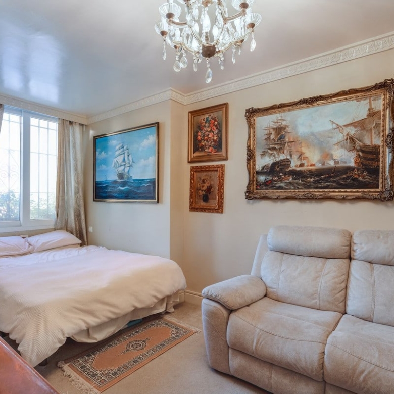 The master bedroom is particularly impressive; it is a very spacious room with a splendid four-poster bed and a spacious sitting area, perfect for relaxation. This room offers a luxurious open bathroom with unique features and a lovely lavish bath, making it a true sanctuary.