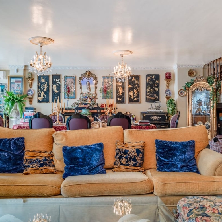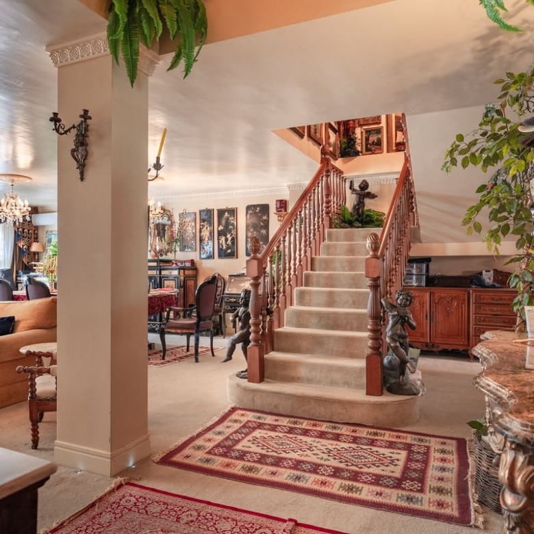 On the lower floor, you will find a generous living room with an elegant open kitchen and dining area, ideal for cozy evenings with friends and family. Additionally, there is a bedroom on this floor. From the inviting living room, you have access to an intimate garden through French doors, shared with just one neighbor. A beautiful staircase with a gallery leads to the first floor, where three bedrooms are located.