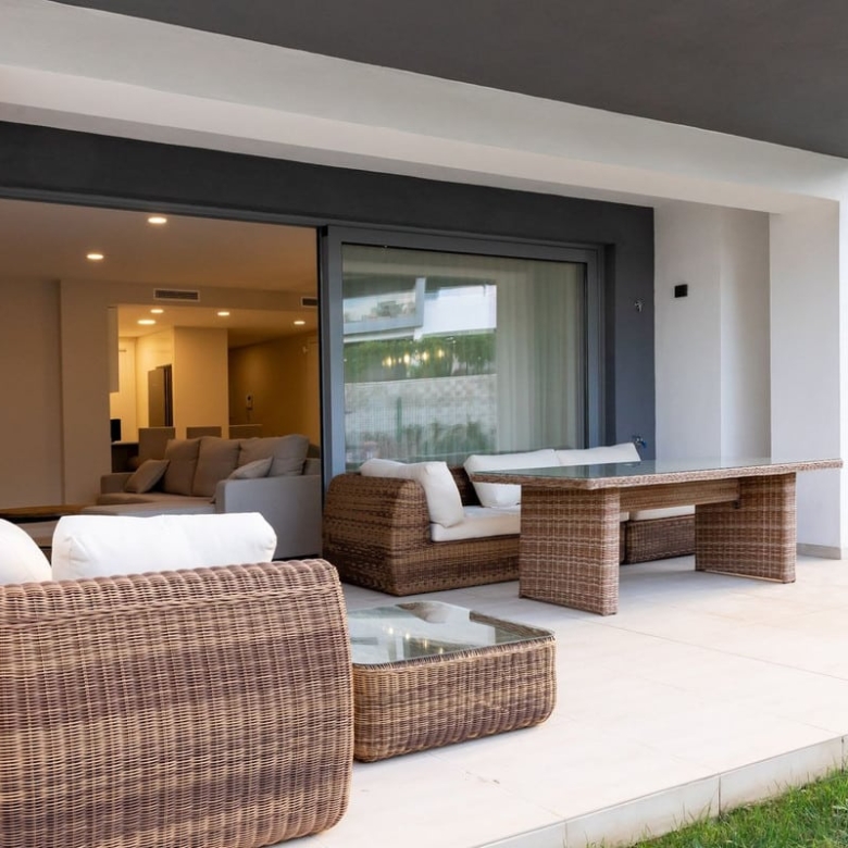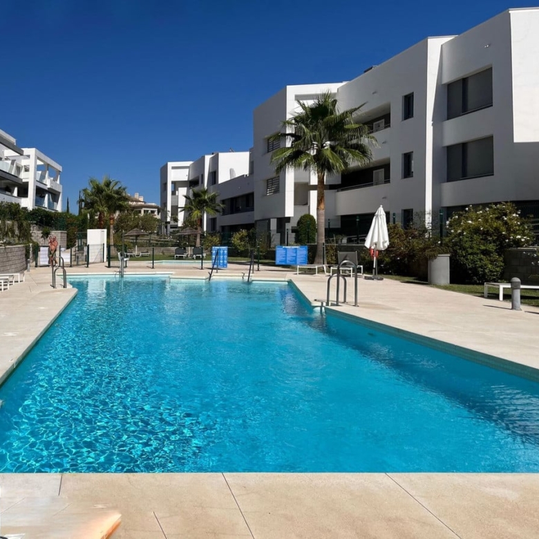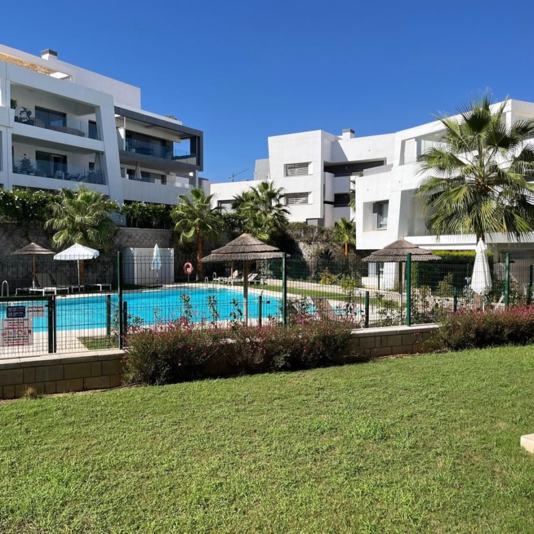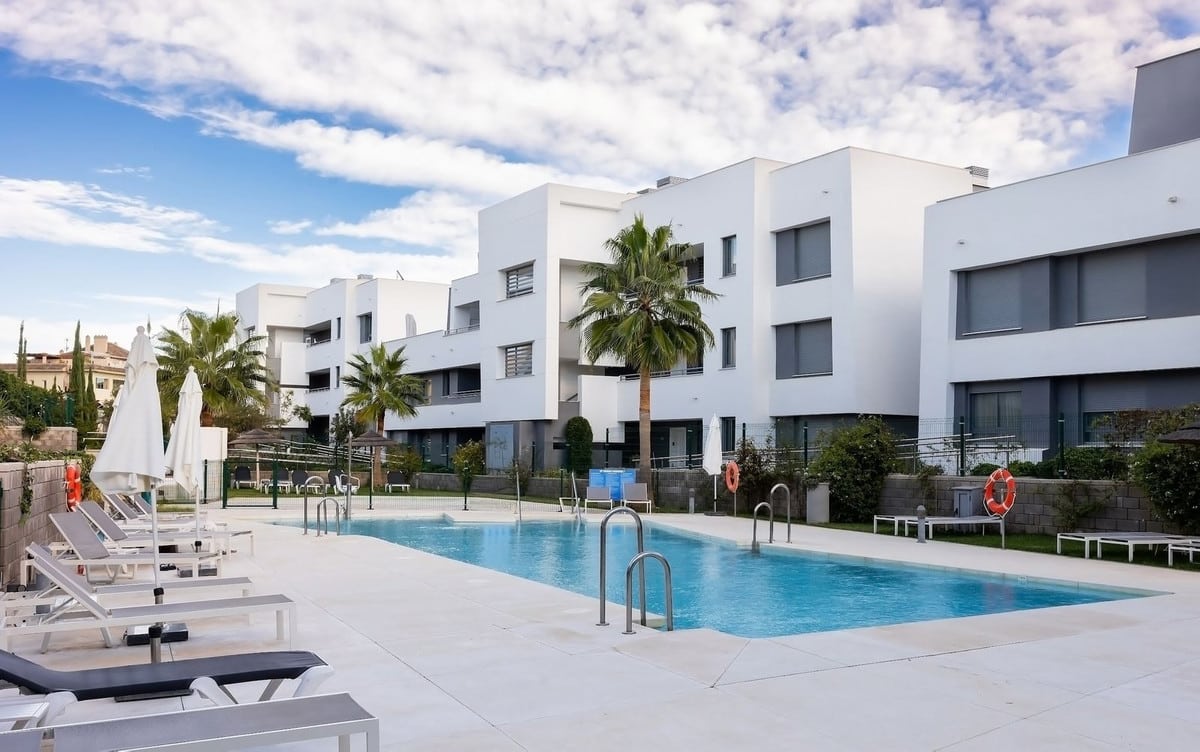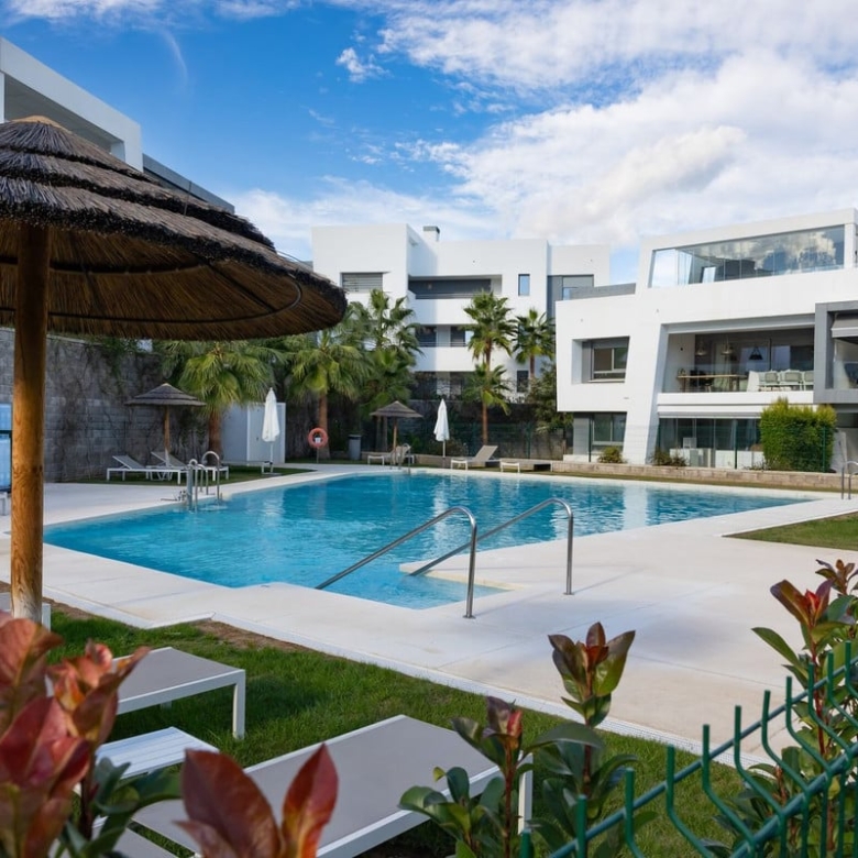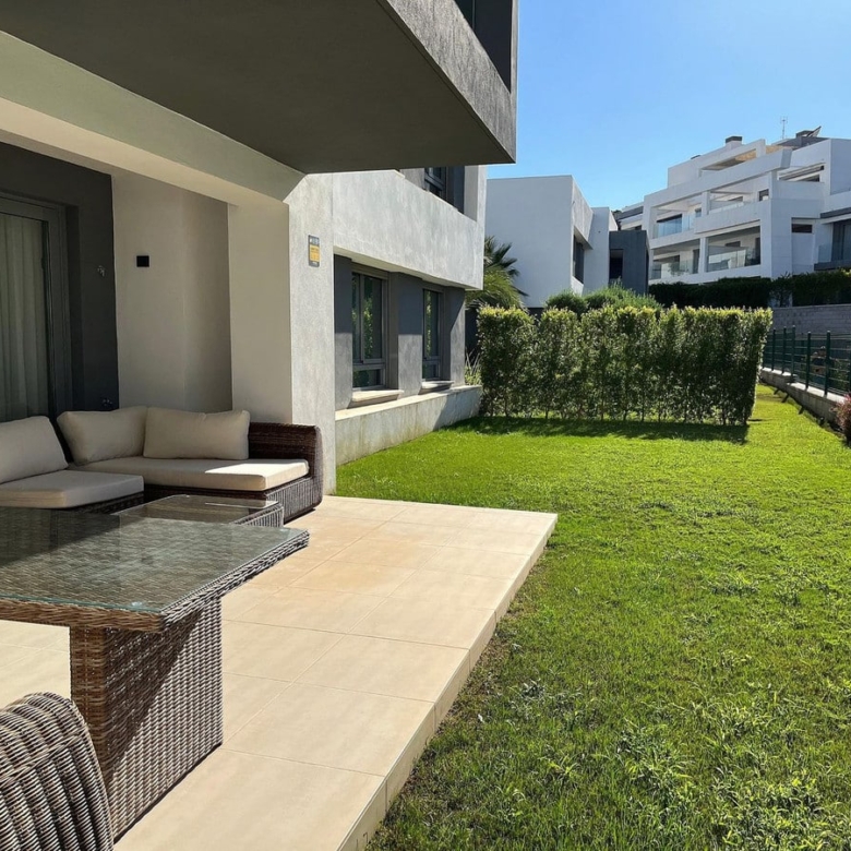 Modern apartments with four bedrooms, three bathrooms, a large garden, and a terrace in the Selwo residential area. The apartments are ideally located in a sought-after area between Marbella and Estepona, just 10 minutes by car from Puerto Banus and the center of Estepona. international school opposite the complex. Additionally, the beach can be reached in just a few minutes by car or a 10-minute walk.