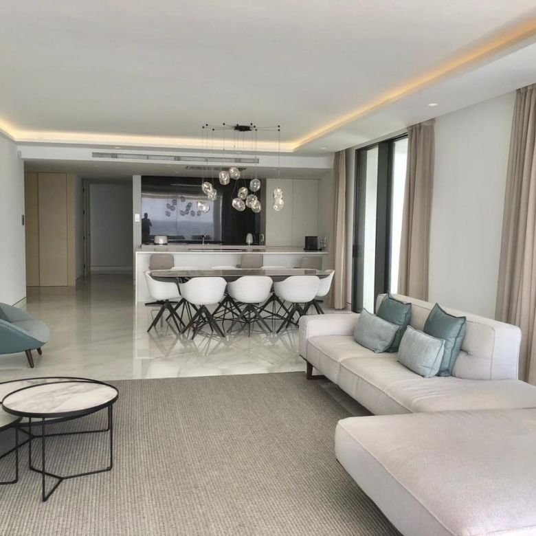 Designed to an impeccable standard, this apartment offers four spacious bedrooms, each featuring an en-suite bathroom to ensure utmost privacy and comfort. A separate guest toilet adds further convenience for hosting visitors. The open-plan interior layout is accentuated by the abundance of natural light streaming through the double-glazed glass doors. Residents can enjoy the warm sun on the expansive 80m2 terrace, which is perfect for al fresco dining or simply soaking in the tranquil sea views.