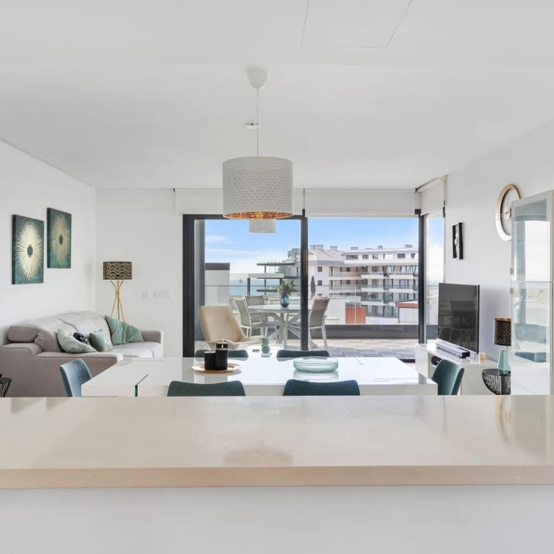 This spacious 4-bedroom apartment, just a 5-minute walk from the beach, offers the ultimate in coastal living with breathtaking sea views. in addition, it is a 2-minute walk from Carvajal train station, it is a 15-minute drive to Malaga and 30 minutes to Marbella. With a generous living space and a modern design, this apartment exudes luxury and comfort.