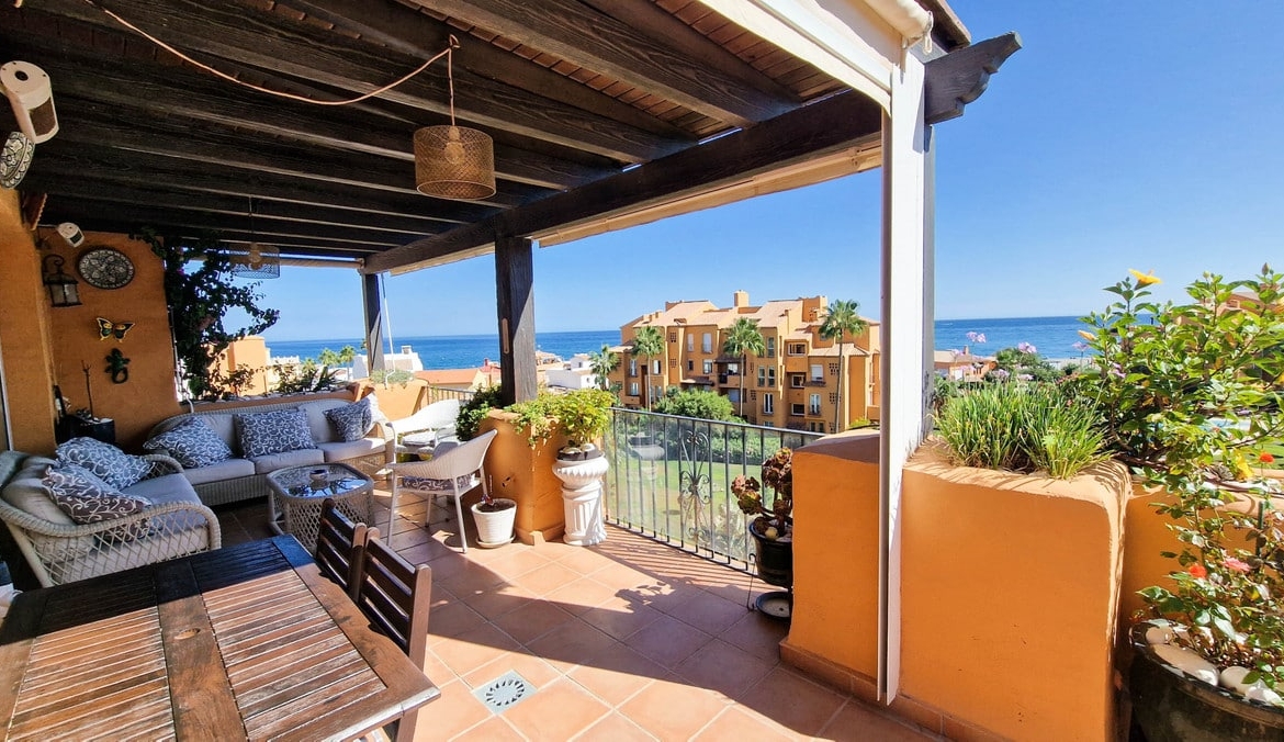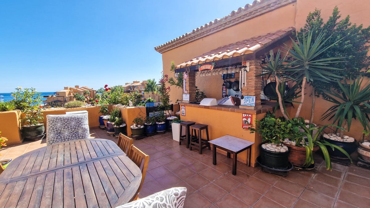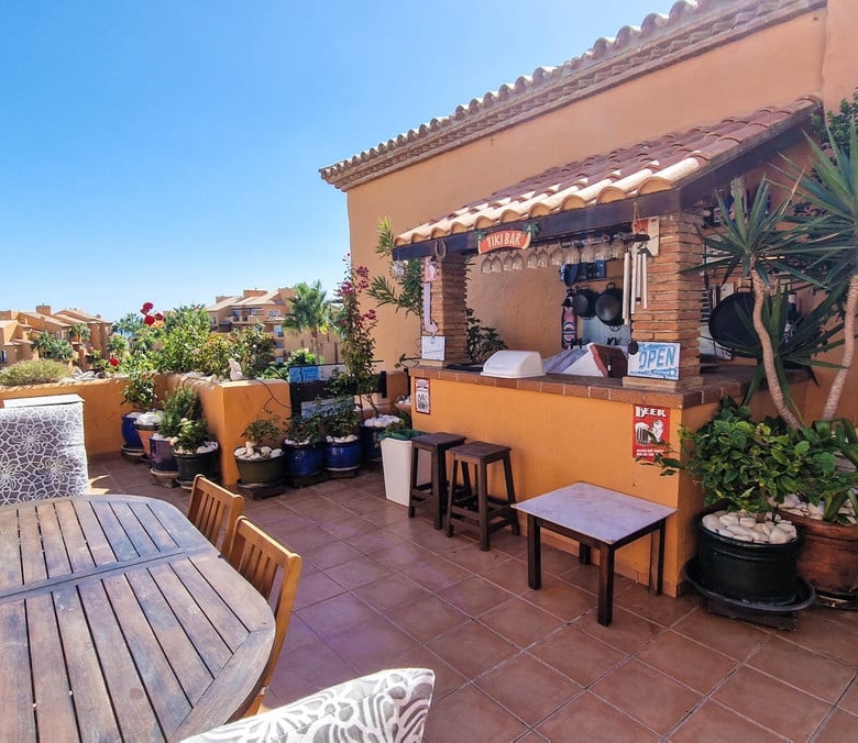The views are beyond belief, to put it mildly. No picture can do them justice, so they need to be admired on site. The communal areas are in immaculate condition and the penthouse itself is no exception. The terrace, oh that terrace does not only offer you the best views you can imagine. it is south orientated so you get plenty of sun, but it is also partially covered, which you will appreciate in July and August. Let’s not forget the terrace bar where you can serve yourself a cool drink and it’s conveniently placed close to the jacuzzi, which is only a few steps away. Two parking spaces and a storage unit are included as well.
