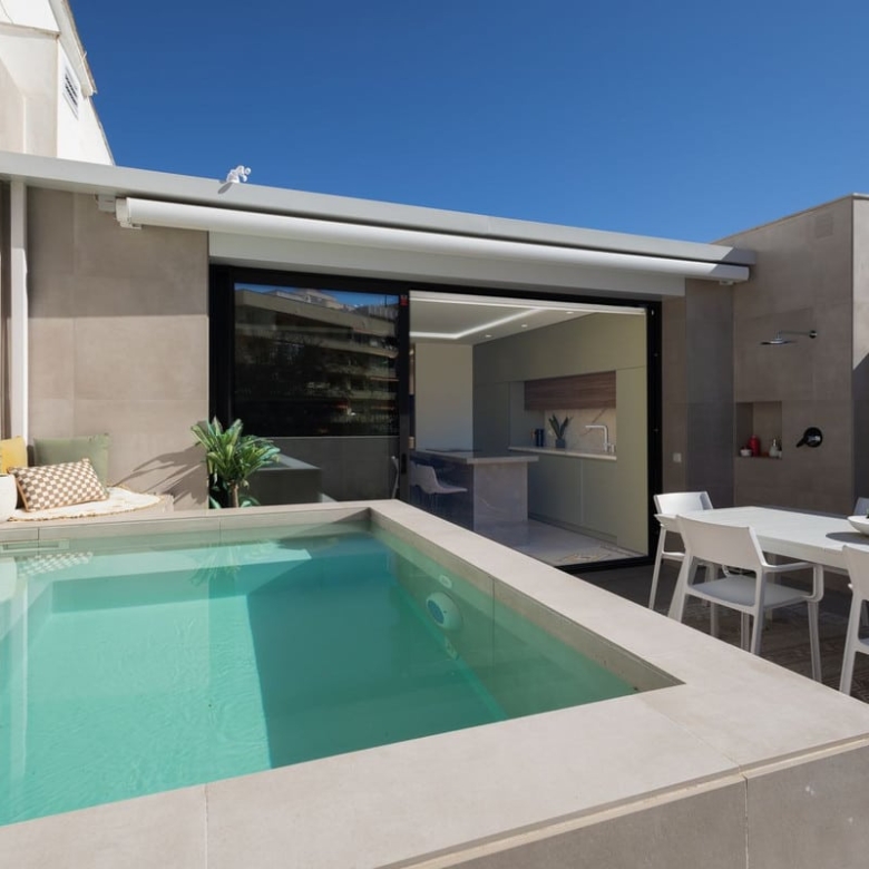 The highlight of this home is its spectacular terrace with panoramic views of La Concha, featuring a private pool and an electric awning, creating a secluded oasis to enjoy Marbella’s exceptional climate.