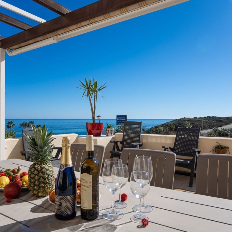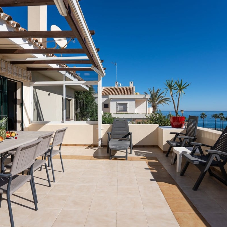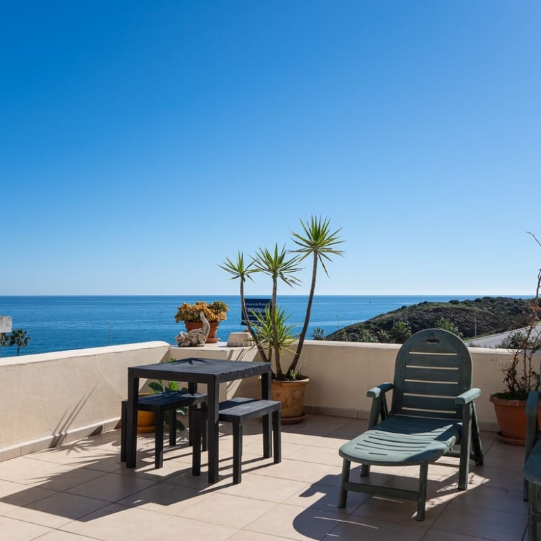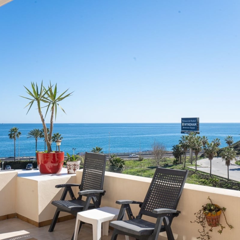 Spacious two-level apartment that can be easily divided into separate properties as each one has it’s own entrance. On the lower level there is a living room, kitchen, 2 bathrooms, 2 bedrooms and a huge terrace with a breathtaking view. it is equipped with a large table, deckchairs and a stone barbecue. On the first floor there are 2 renovated bedrooms, a kitchenette, a bathroom and a private exit to the terrace. Located close to the Wyndham complex (5 minutes’ walking) with it’s restaurants, bars, shops, bakery ect. Only 10-minute walk from a small, charming beach with a beach bar called Villa Tropicana and a 5-minute drive to Fuengirola, the Miramar shopping center, Skate Park and plenty of restaurants and bars. Malaga airport – 20 min by car.