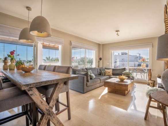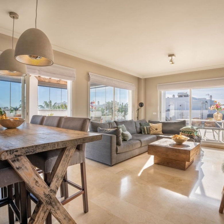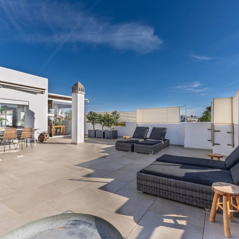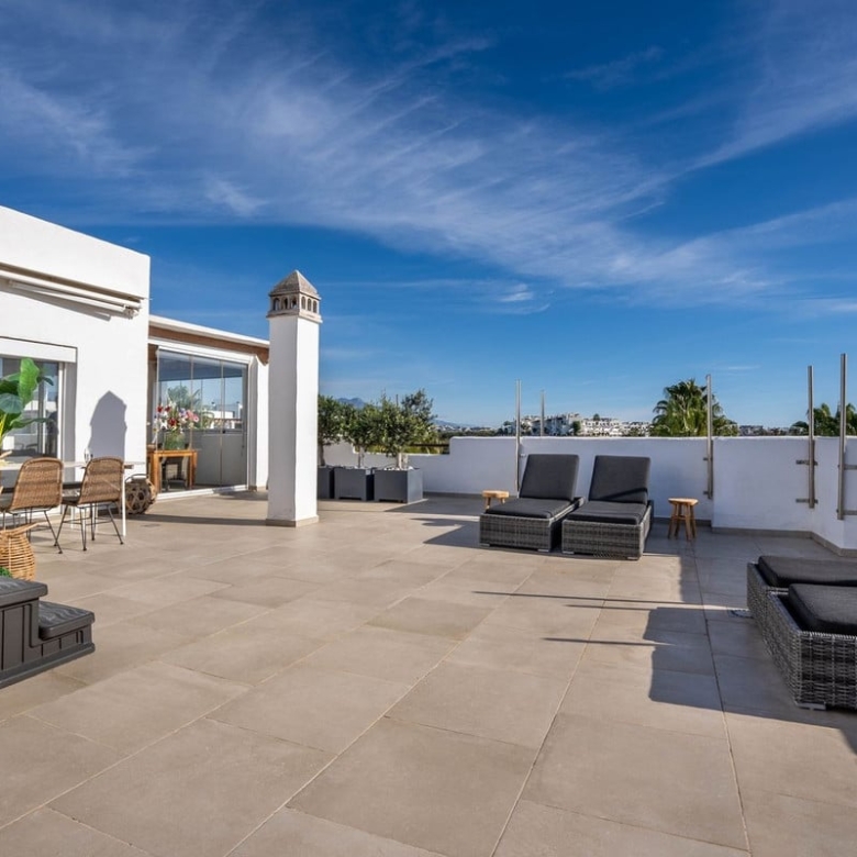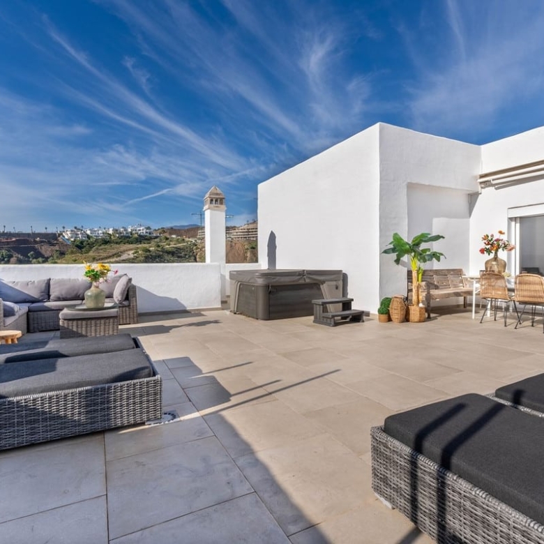 Nestled in the highly sought-after New Golden Mile of Estepona, this spectacular furnished duplex penthouse offers a perfect blend of luxury, comfort and modern design. With expansive terraces, generous living spaces and stunning mountain and country views, this property is an ideal haven for those seeking a tranquil yet convenient lifestyle.