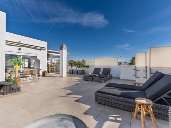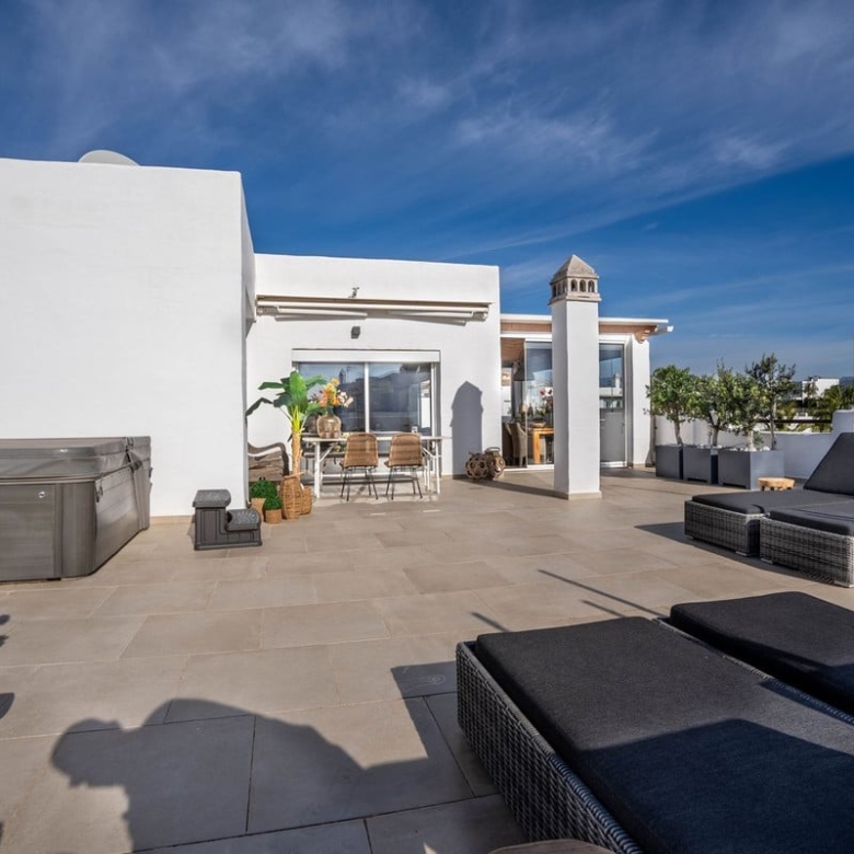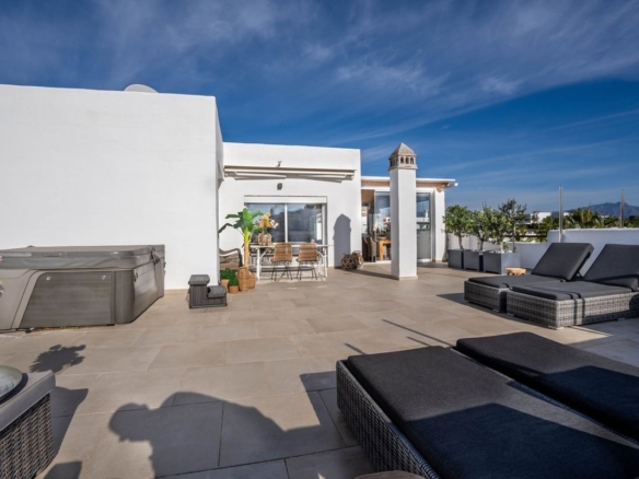 Exquisite duplex penthouse with panoramic mountain and country views in Lunymar Golf, New Golden Mile, Estepona