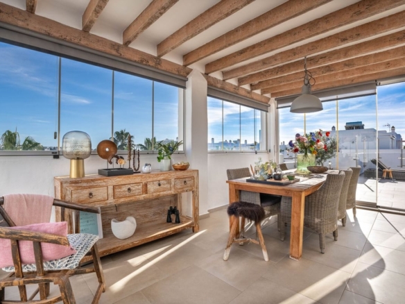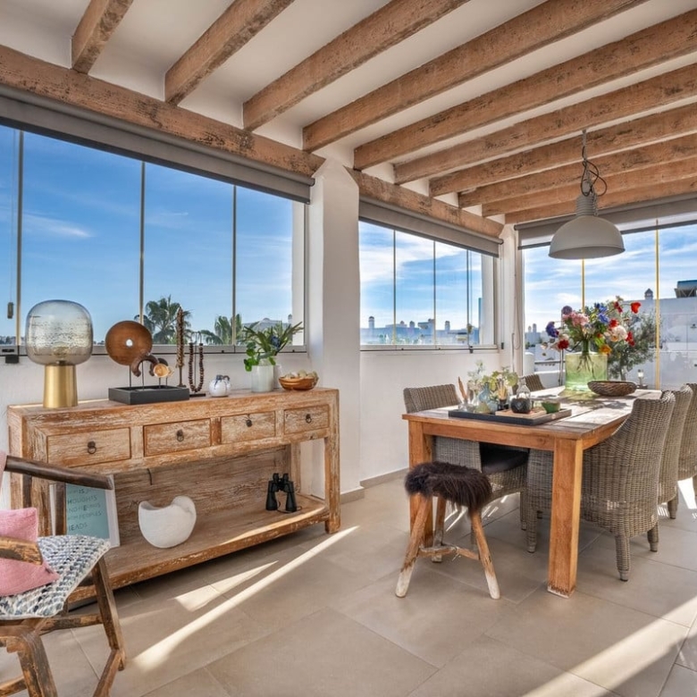 The penthouse opens into a bright and spacious living room, featuring a covered and enclosed extension of the living space on the terrace. With 171 m2 of terrace space divided across three distinct terraces (west, east, and south-facing), you’ll enjoy panoramic views and plenty of room for outdoor dining, lounging, and relaxation. The terrace also includes a jacuzzi, perfect for unwinding in style.