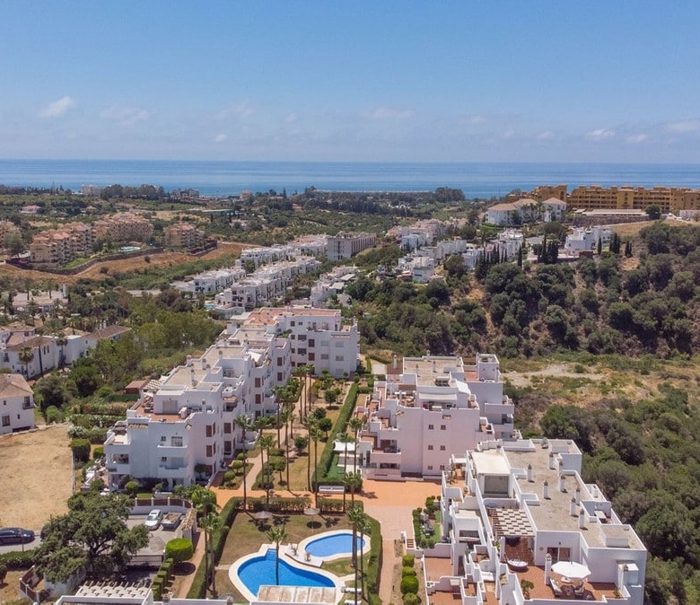 Lunymar Golf is located in La Resina Golf, New Golden Mile, Estepona (Selwo area). The gated urbanisation offers a lagoon style swimming pool area, gardens and a gym. The peaceful urbanisation is surrounded by nature and situated next to the Selwo Aventura theme park, a stone’s throw from amenities and the beach, between Marbella and Estepona.