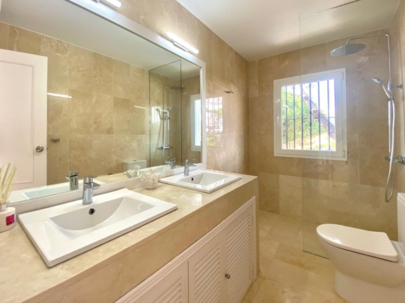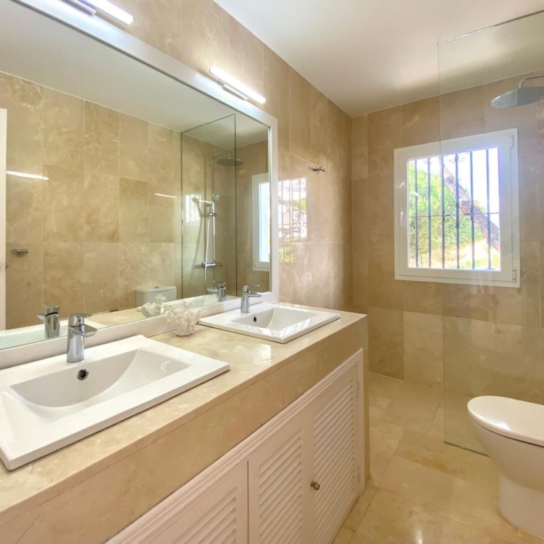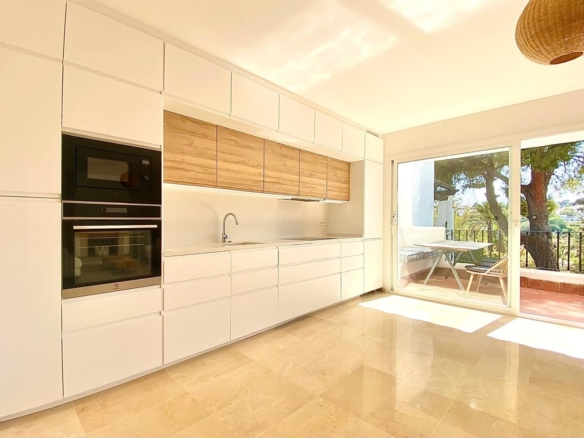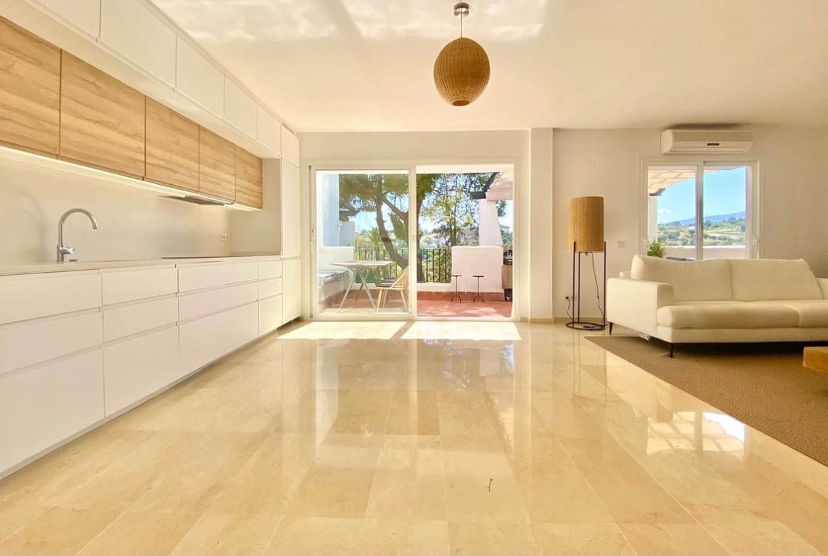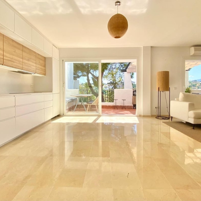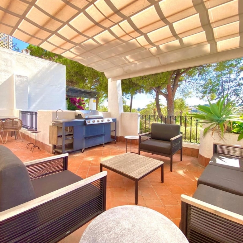 This beautiful corner apartment is located just 2 minutes from the famous Puente Romano. As a first and top-floor apartment, it offers a unique living experience. The ground floor features a spacious living room, a beautifully renovated kitchen, and a bedroom with a separate bathroom. Step outside to a large terrace equipped with a lounge area and a barbecue, perfect for outdoor entertaining.