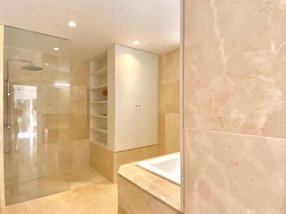 Upstairs, you’ll find three more bedrooms and two additional bathrooms, including one en-suite bedroom. Additionally, the apartment boasts a stunning 38 sqm solarium, providing a perfect spot to relax and enjoy the sunshine.