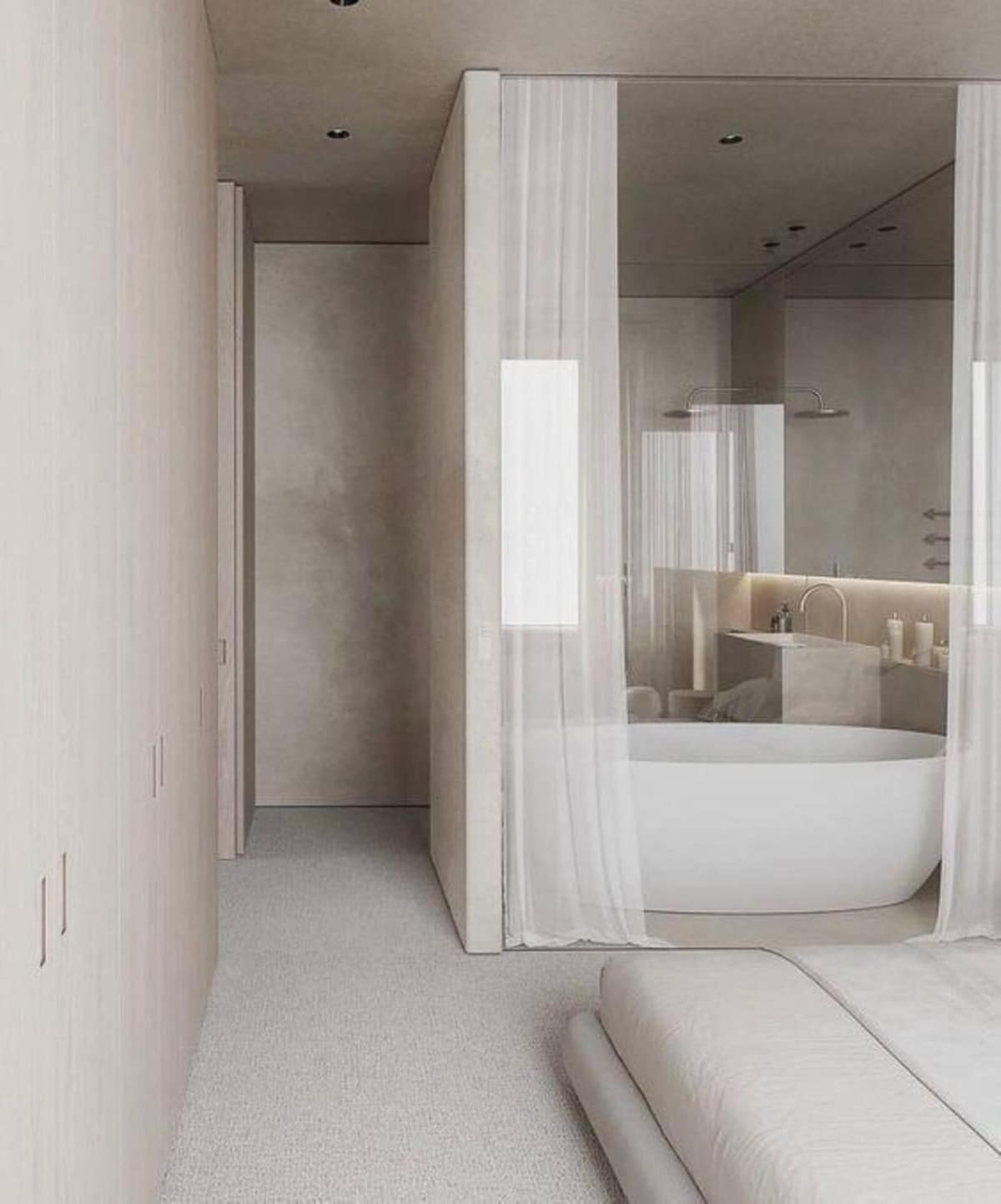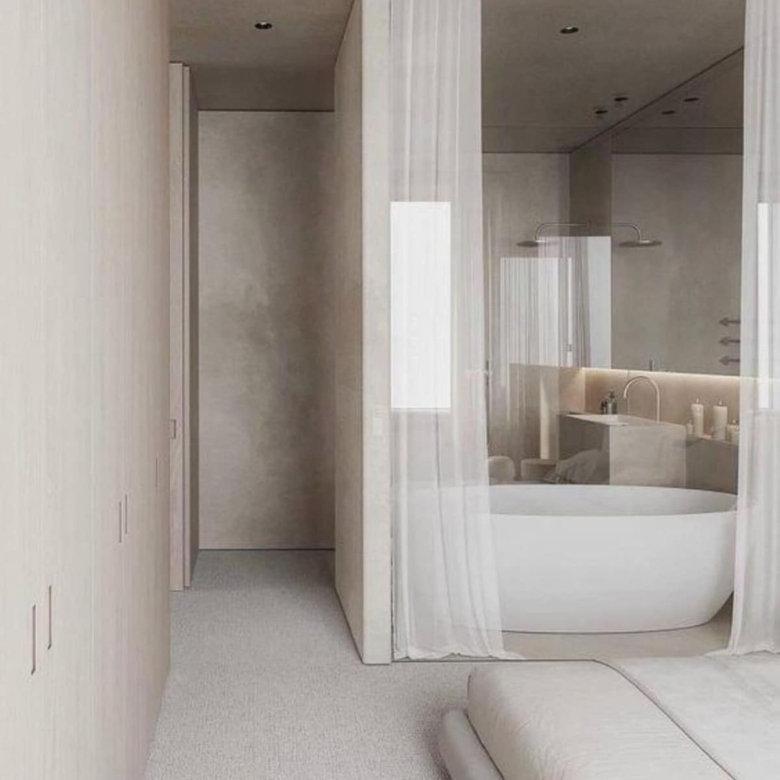 -Master Suite Excellence: Located on the main level, the master suite offers unparalleled luxury, with a walk-in dressing room, open-plan bathroom featuring a freestanding bathtub and walk-in shower, and a private terrace with a gym.