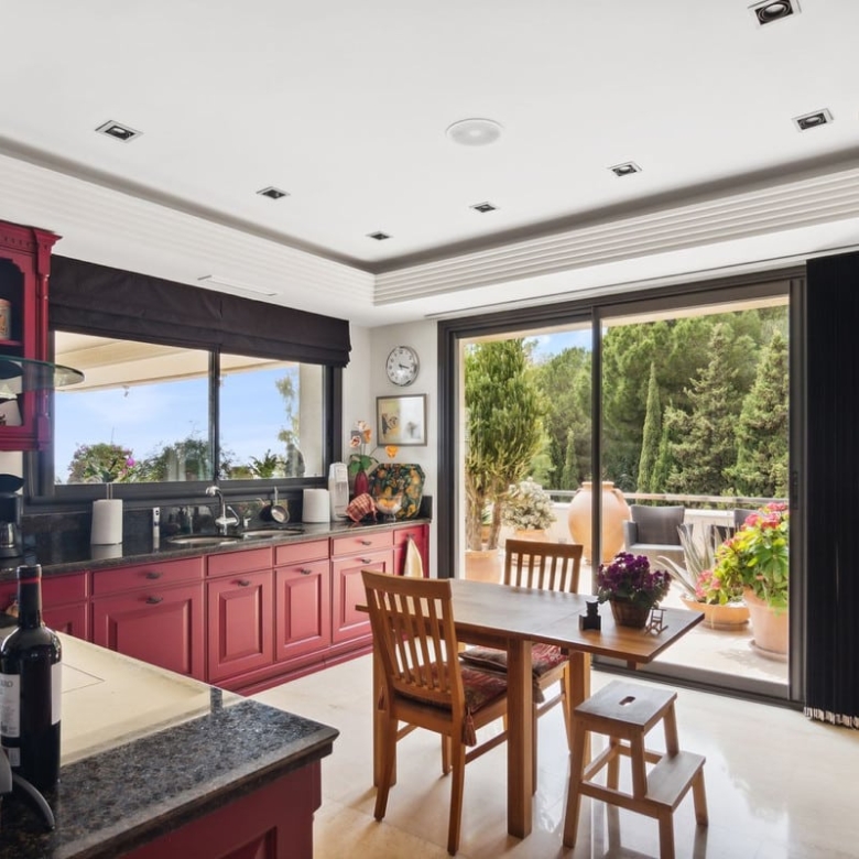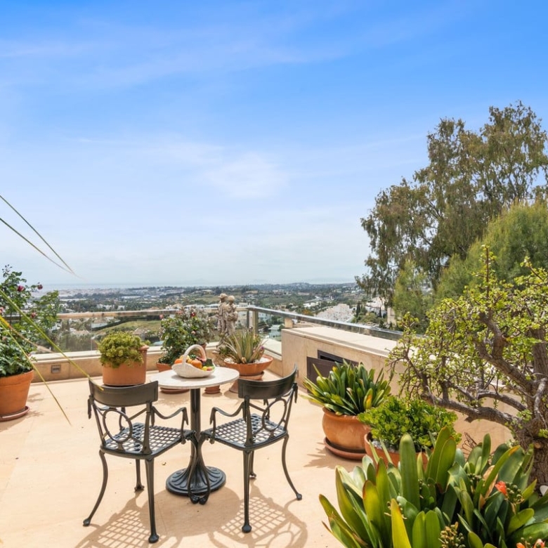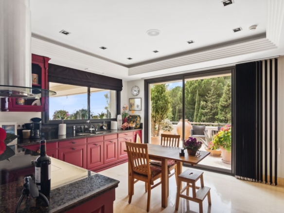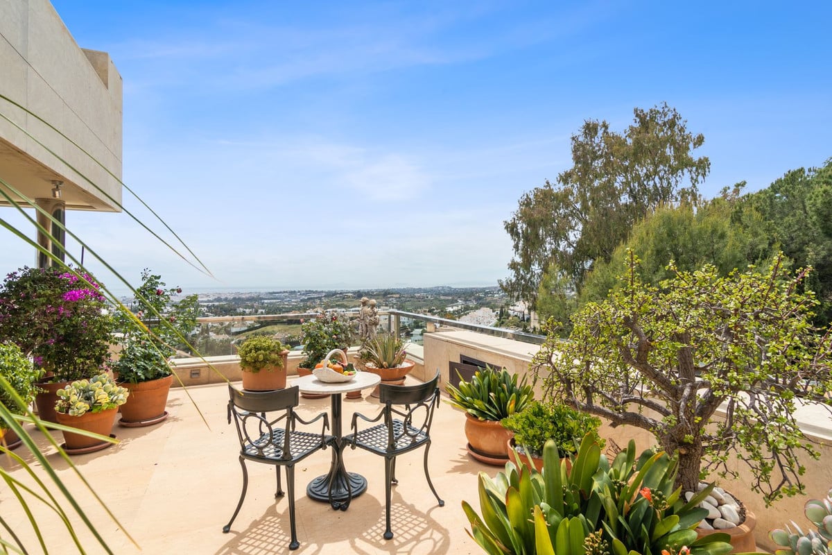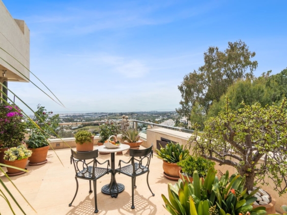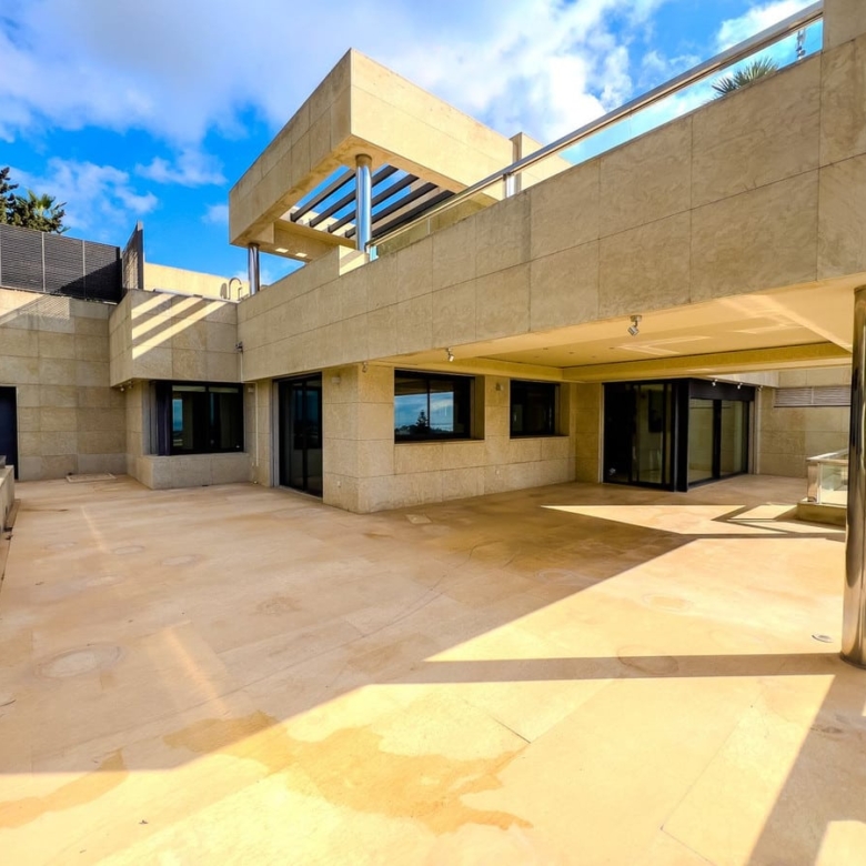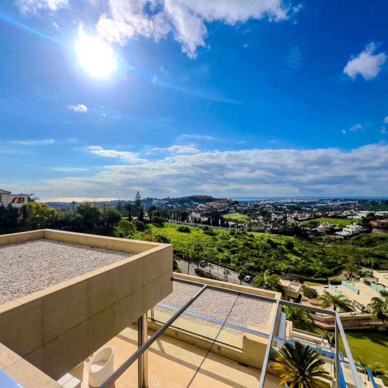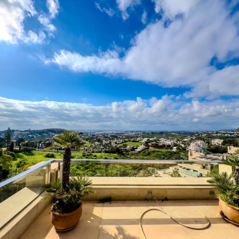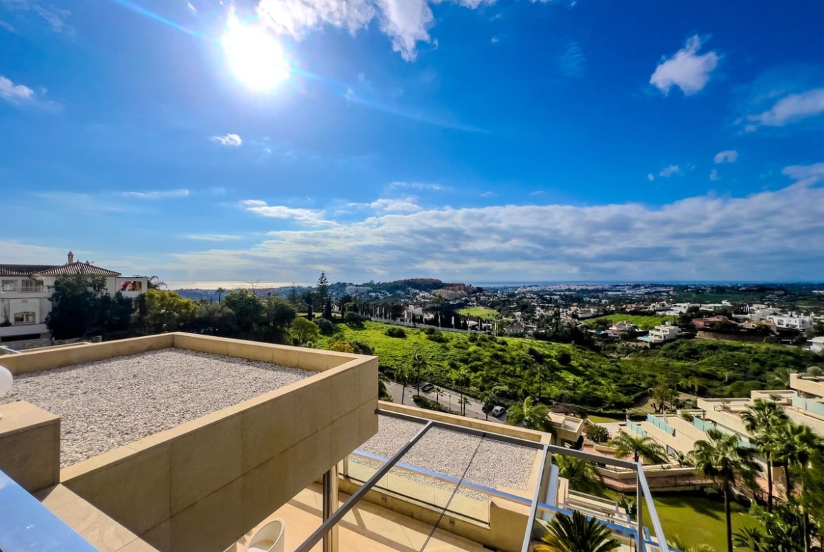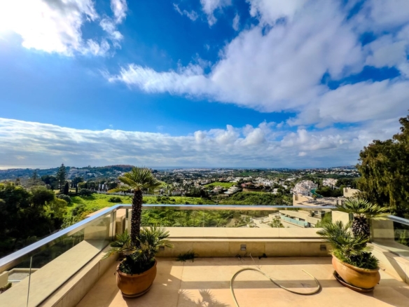 Located in the gated community of Los Arrayanes. This duplex penthouse apartment offers 4 en-suite bedrooms with a potential to make a 5th or even 6th on a baffling 1300m2 of built surface, including a private garage for 5-6 cars on the penthouse level, with views of Los Naranjos golf course and panoramic sea views.