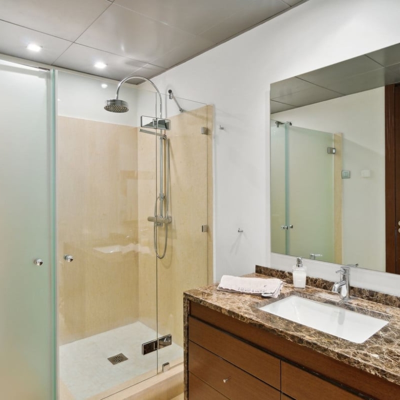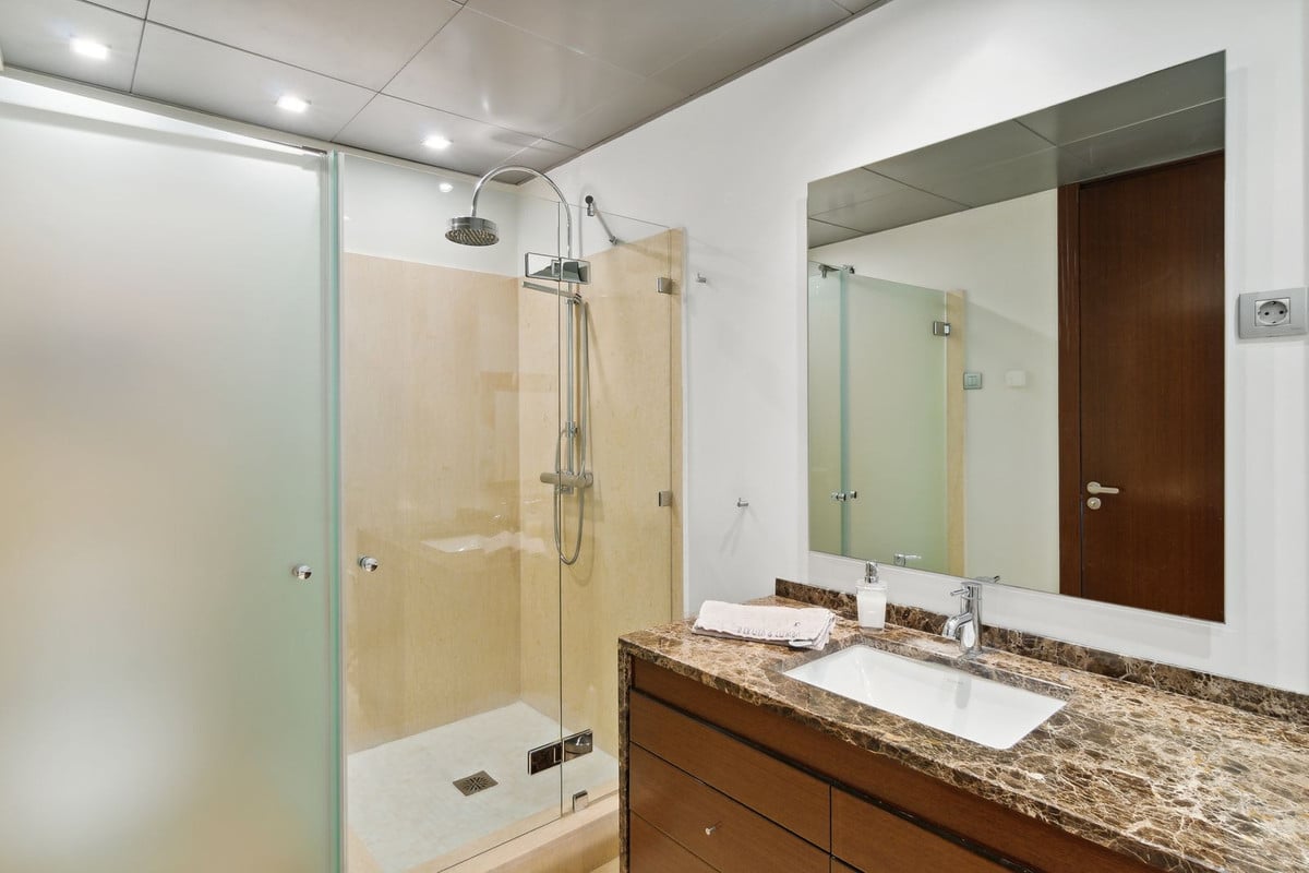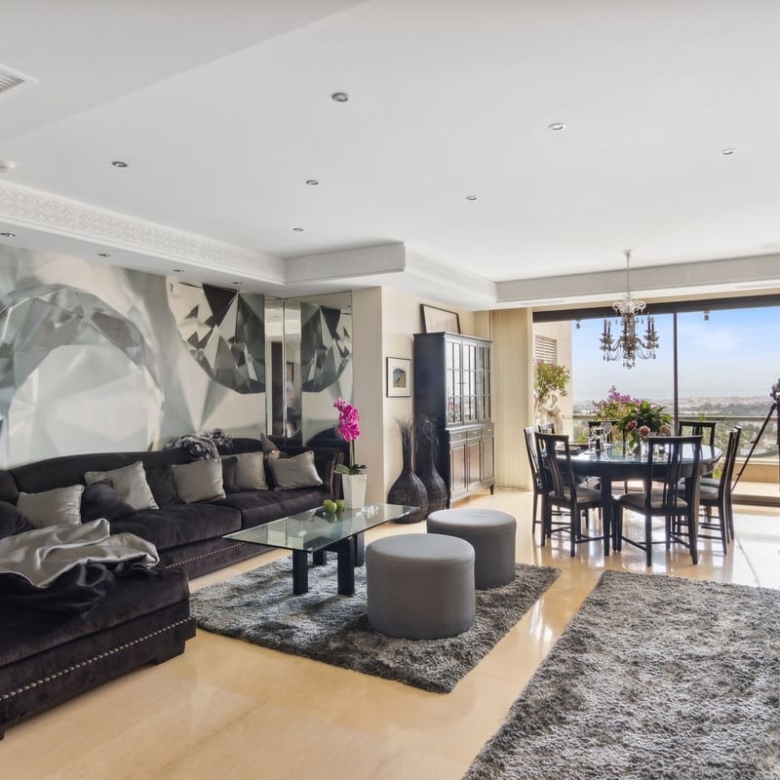 The penthouse was bought off-plan, and on the original plans they were 2 separate penthouses. During construction, these 2 penthouses were merged into one, creating a unique property with a huge amount of living area. An amazing extra that was also drawn from the original plans is the private 6-car garage on the penthouse level.