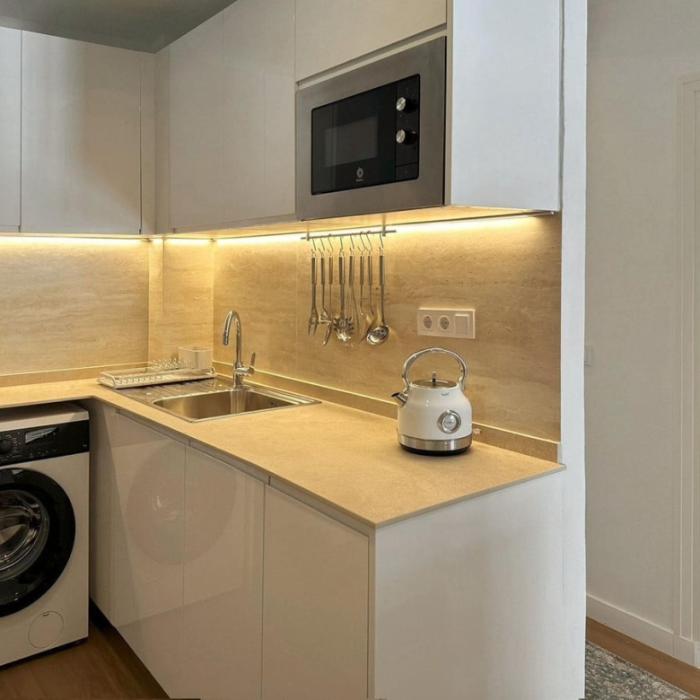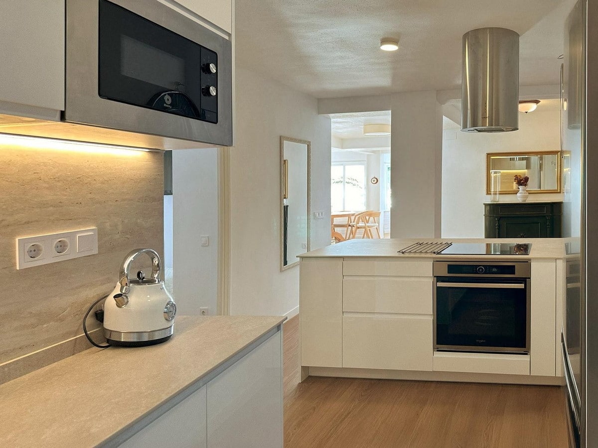 The apartment, completely renovated with high-quality materials, has 3 bedrooms: two double bedrooms with ample storage space and 160×200 beds, and a third bedroom with bunk beds. it has 2 modern bathrooms with large rain showers and bidets, an open-plan kitchen with an island fully equipped with new appliances, as well as a practical laundry room.