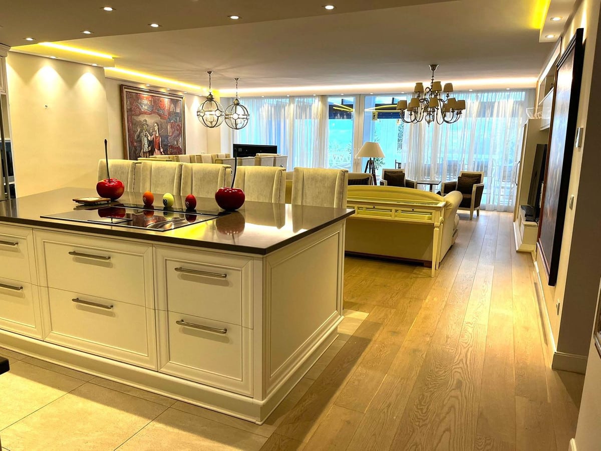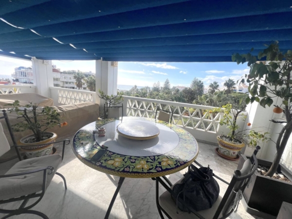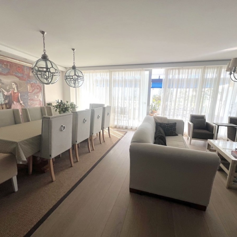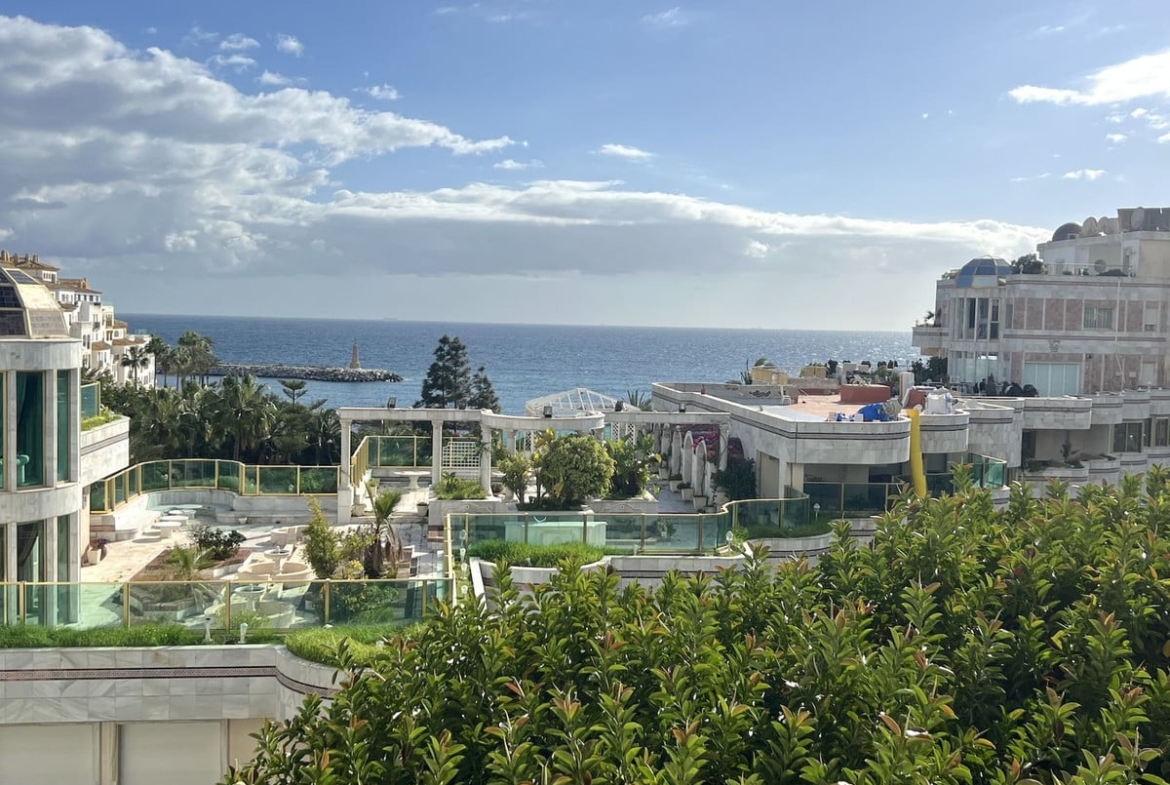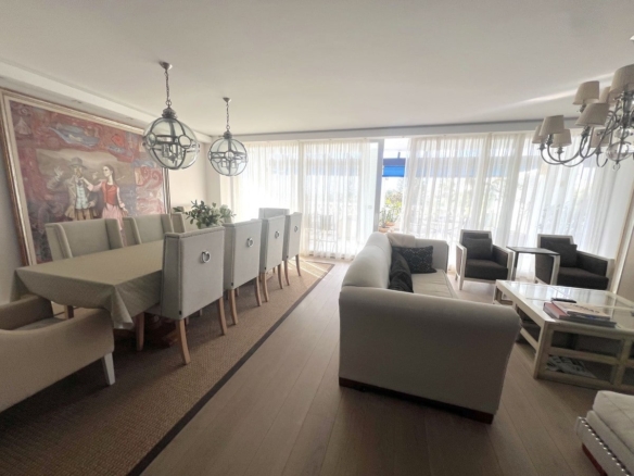 This impressive middle-floor apartment is situated in a beachfront complex in Puerto Banus, offering direct access to the sea. The complex features three swimming pools, an on-site restaurant, and expansive communal gardens, all within a distinguished building that provides 24-hour reception.