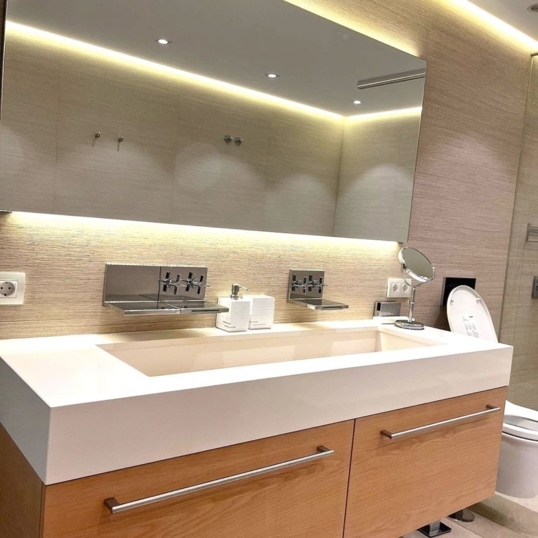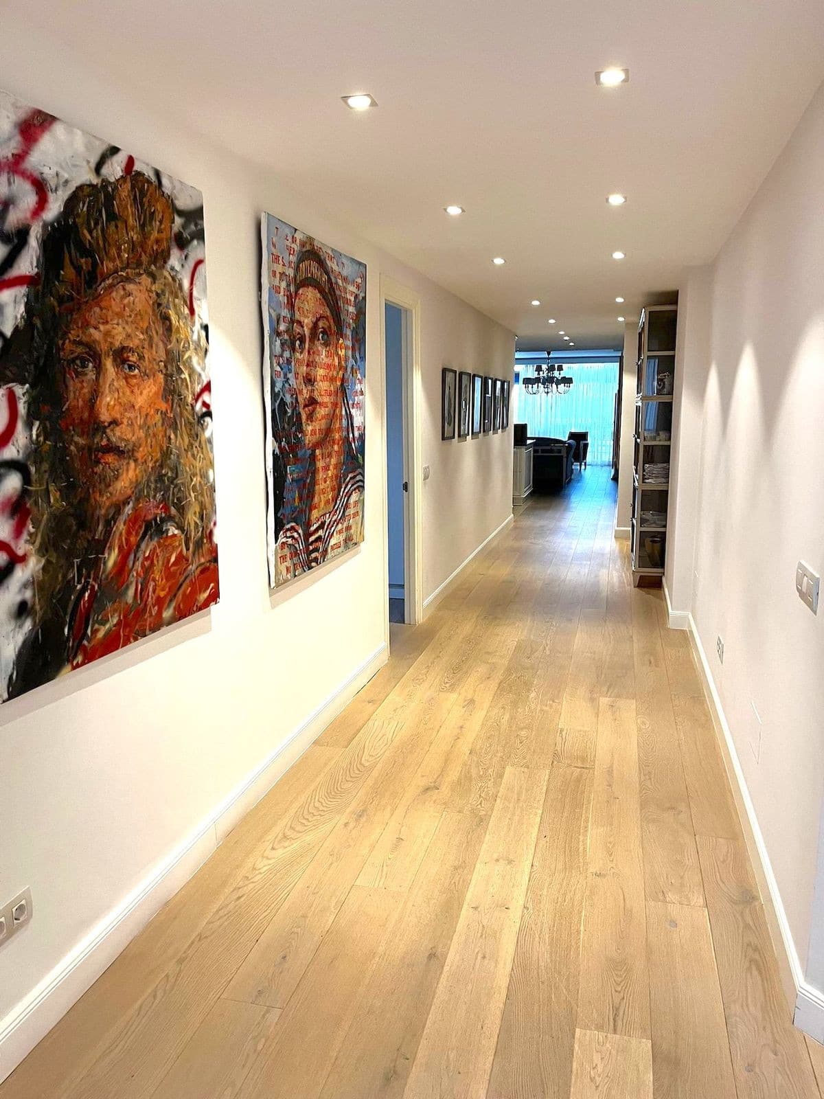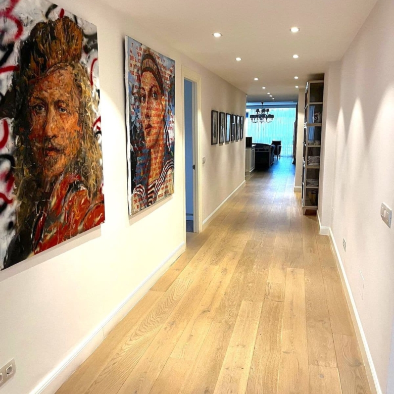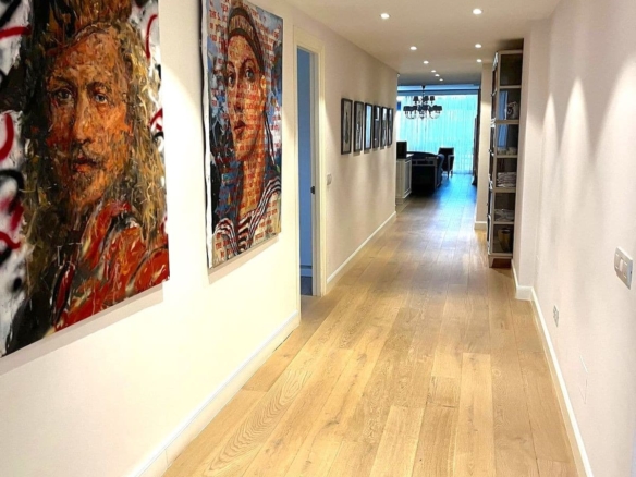 To the left of the corridor, you’ll find a bedroom with an en-suite bathroom, while on the right side, there is a guest bathroom. Continuing down the corridor, there are two additional double bedrooms, each with its own en-suite bathroom; one of these bedrooms has direct access to the terrace. Every bedroom features windows that allow for an abundance of natural light.