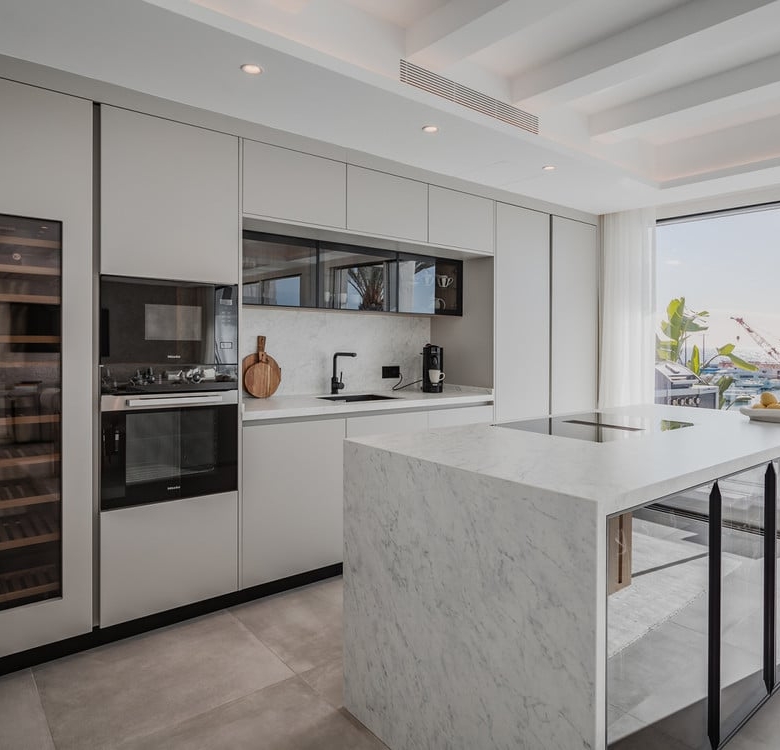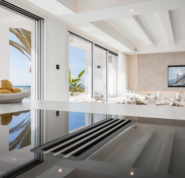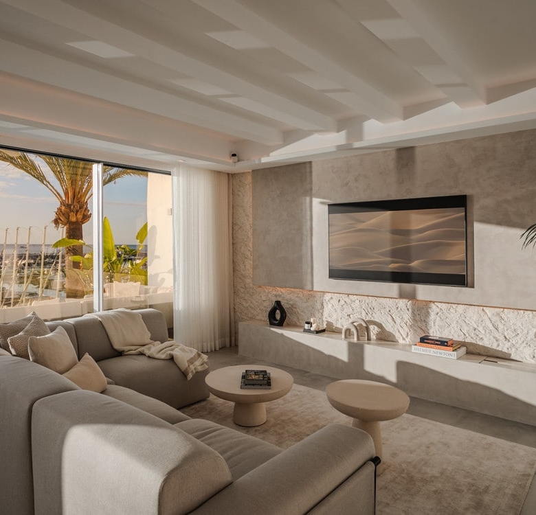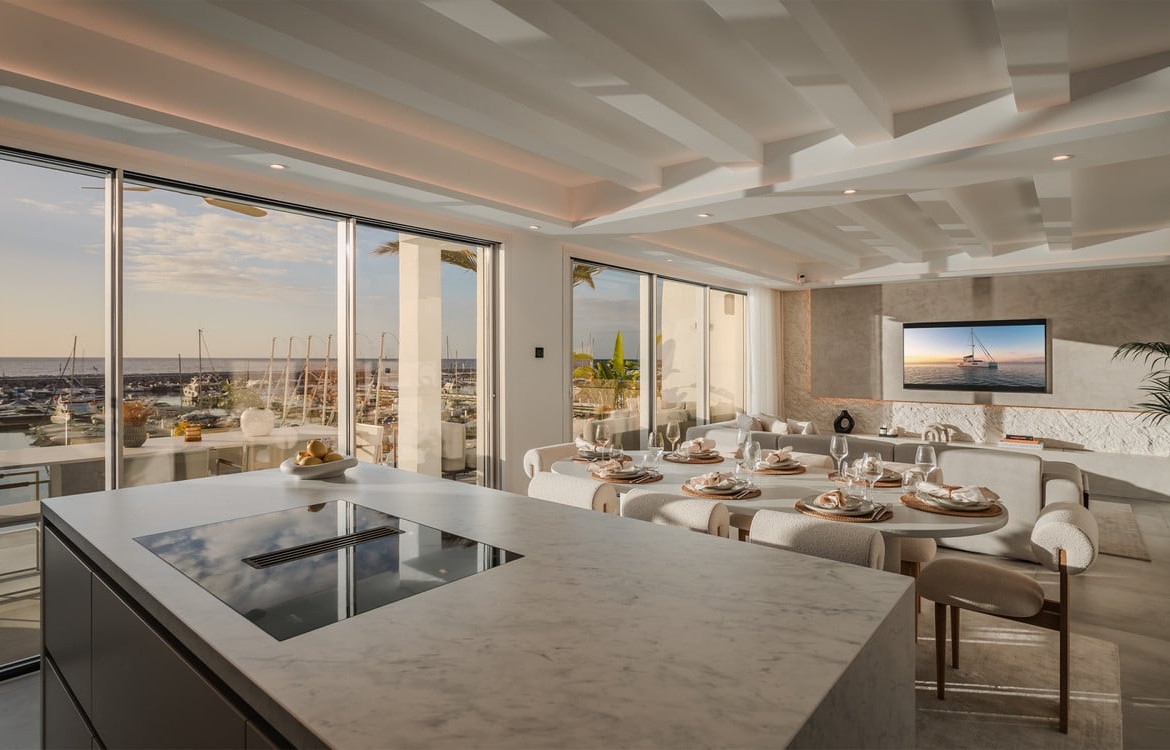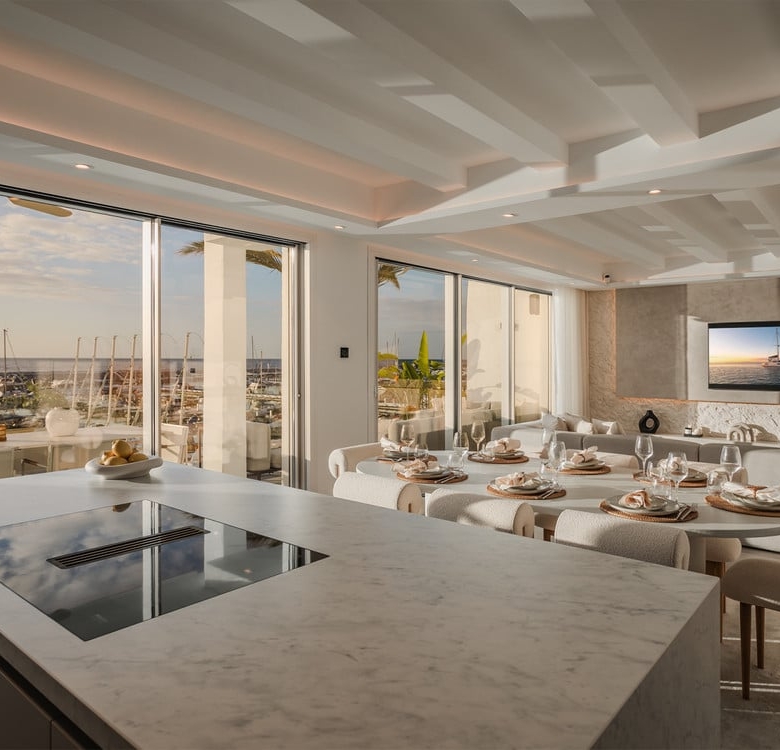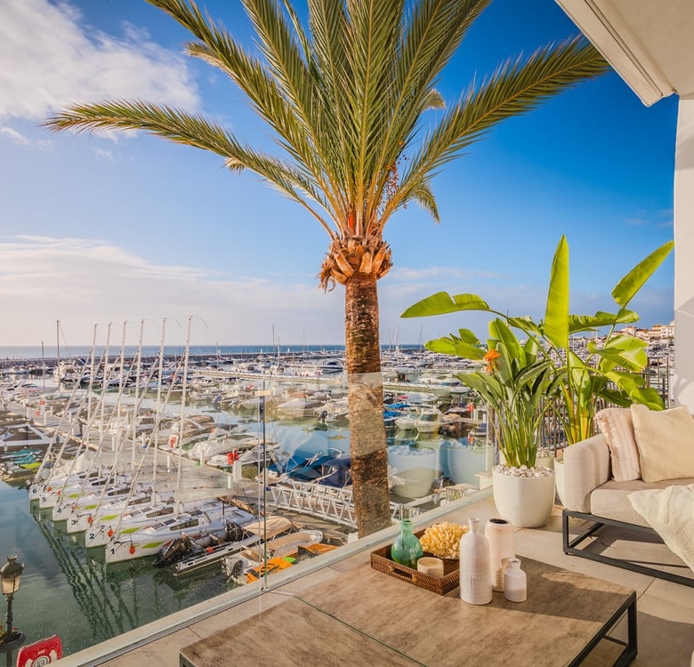 A bright and spacious duplex penthouse on the front line in Puerto Banus designed and decorated by one of Marbella’s leading architects. The property consists of large and bright living room with cream marble floors and feature lighting, a very spacious master en-suite bedroom with walk-in wardrobe and stunning sea views. There are two further en-suite double bedrooms, plus a further guest bedroom with separate bathroom; a fully fitted kitchen with high quality appliances and plenty of cupboards and storage space. The property also features an amazing terrace with stunning views over the boats and sea. The property is fully furnished. it has just been fully renovated and redesigned to top quality specifications. included in the price there’s a 10 year free port pass.