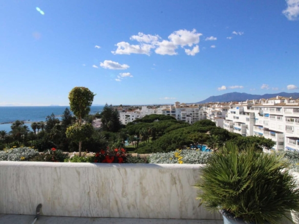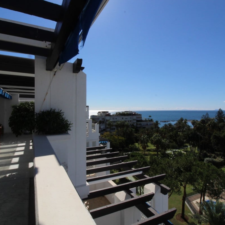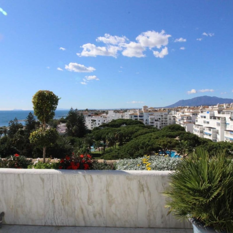 Wonderful views of the sea and the fantastic gardens of Playas del Duque. With 4 bedrooms and 4 bathrooms. The main bedroom in the duplex part with bathroom en suite, dressing room and living area from which you can access the fabulous terrace with the best views of the sea. On the main floor, a large living room and 3 large bedrooms, two of them with an en-suite bathroom with a bathtub and shower, and another bathroom for guests. The kitchen at the entrance has a laundry room. the living room is spacious and there is access to the terrace with truly incredible views of the gardens and the sea. Especially well located on an attic floor and centered on the garden, so the views are panoramic, clear and really great. The urbanization has direct access to the beach. Located in a wonderfully unique natural environment, enjoying an exceptional climate, this apartment offers all possible comforts for your enjoyment. Quiet and safe urbanization, with the award-winning tropical gardens, and a few minutes walk from the famous port of the coast, Puerto Banus. The incredible gardens consist of 3 hectares, they have 3 swimming pools with their respective children’s pools, lifeguard assistance and fountains and lily ponds and streams. The gardens house an open-air restaurant and a cafe exclusively for residents open from March to November. The gardens and apartment are wheelchair/chair friendly. The promenade is accessible from our garden gates which make the beach and the Port so easy to access. The urbanization is located on the beachfront with two gates – one leading directly to the beach and the second which leads to the famous promenade, Puerto Banus, which is a two minute walk from either gate. it also has a concierge and security 24/7. Making the urbanization a very quiet and safe place. it has a large underground parking. There is also a supermarket, a pharmacy, a hairdresser, restaurants, cafes and more in the same block. The apartment includes a garage space.