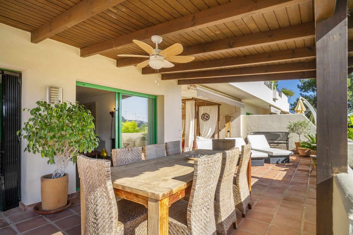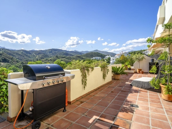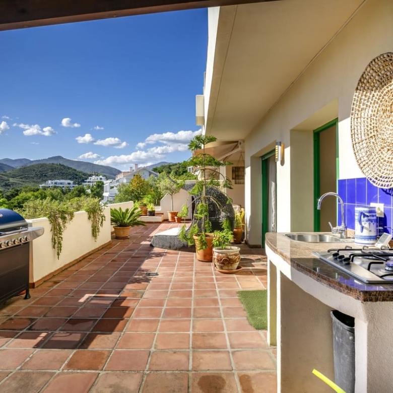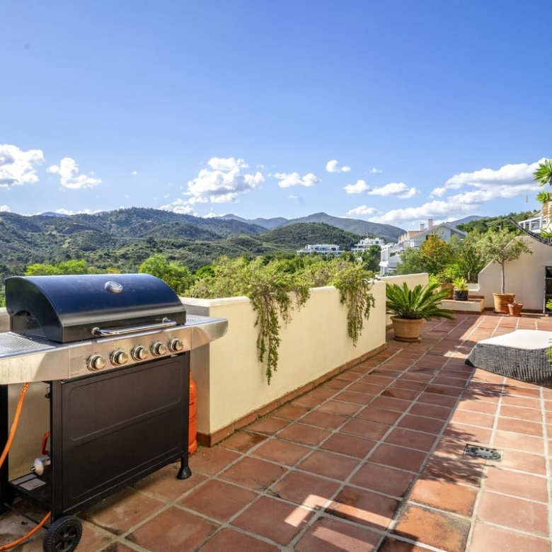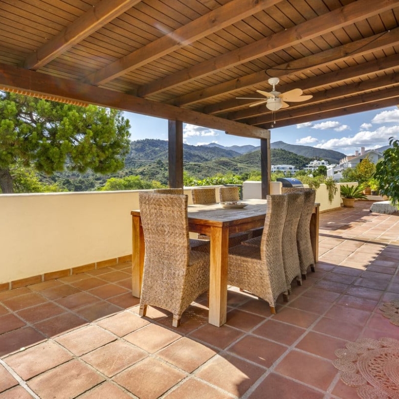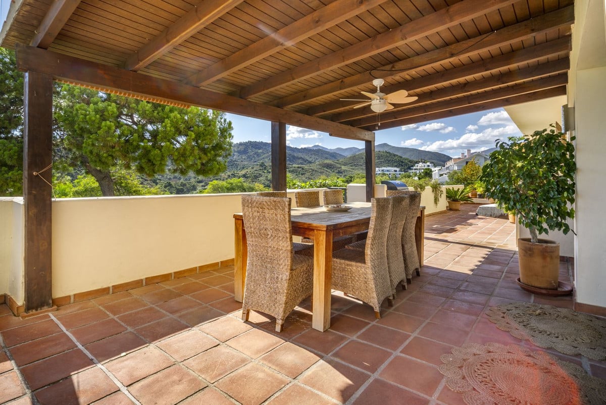 Additional perks include four parking spaces and two storage rooms within the garage, providing ample space for your vehicles and belongings. The community is well-maintained and offers a serene environment with various mountain hiking tracks right at your doorstep. Despite its peaceful setting, the property is conveniently located just a 5-minute drive from the beach and a 10-minute drive to San Pedro and Estepona.