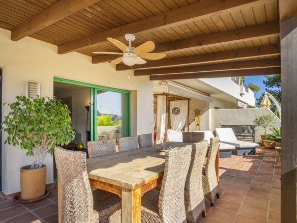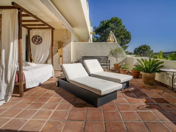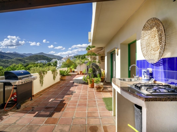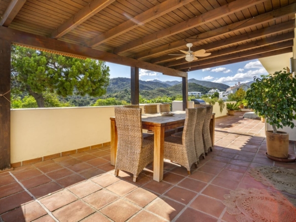 Discover the perfect blend of luxury and tranquility in this exceptional dual apartment unit, nestled in the best position within an exclusive gated community. Boasting panoramic views of the majestic mountains and lush hills, this property offers an unparalleled living experience. Enjoy breathtaking sunsets from the west-facing terrace, complete with a charming pergola, perfect for outdoor relaxation or entertaining guests.