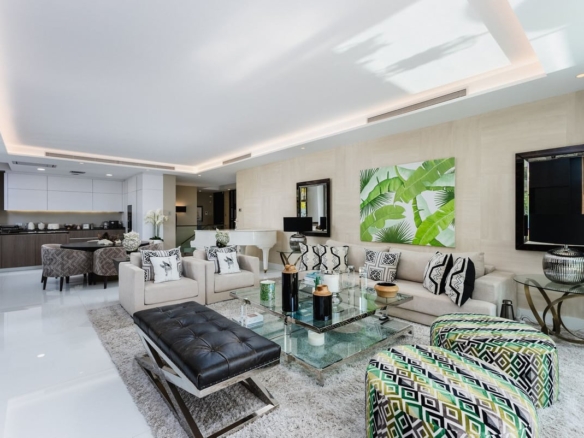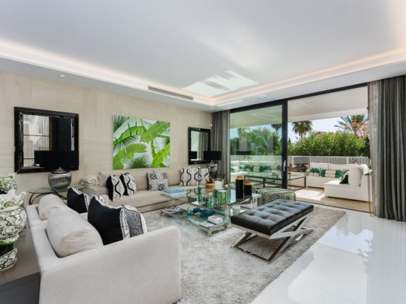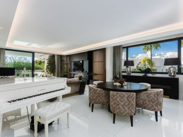 Nestled within the prestigious La Reserva de Sierra Blanca, Marbella, this luxurious duplex ground-floor apartment epitomizes elegant living in a prime location.