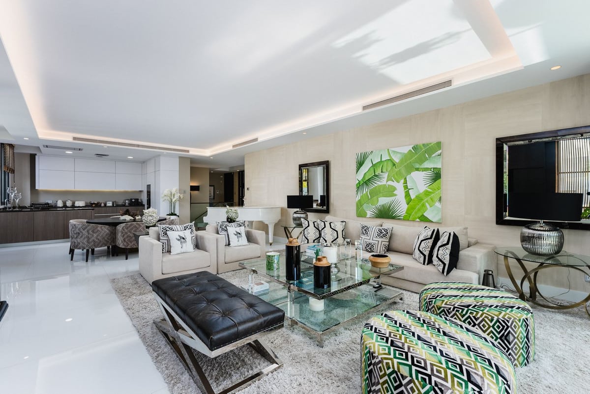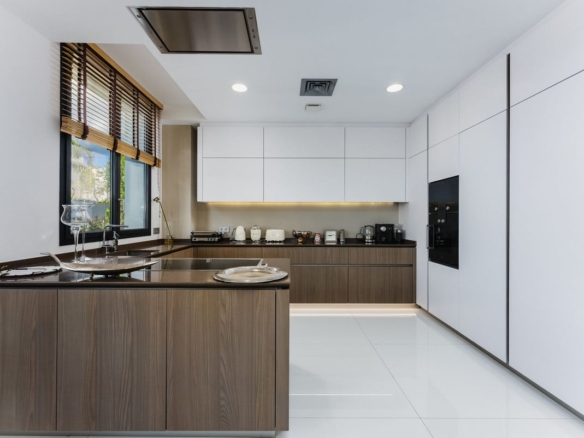 Spanning an impressive footprint, this residence boasts 4 spacious bedrooms, each with en-suite bathrooms, and a guest powder room for added convenience. Upon entering, a grand, open-concept living area unfolds, seamlessly blending the living room with a sophisticated dining space and a sleek, fully equipped kitchen designed for both beauty and functionality. This main level is bathed in natural light and flows effortlessly into a private terrace and landscaped garden, offering a tranquil extension of the indoor living area.