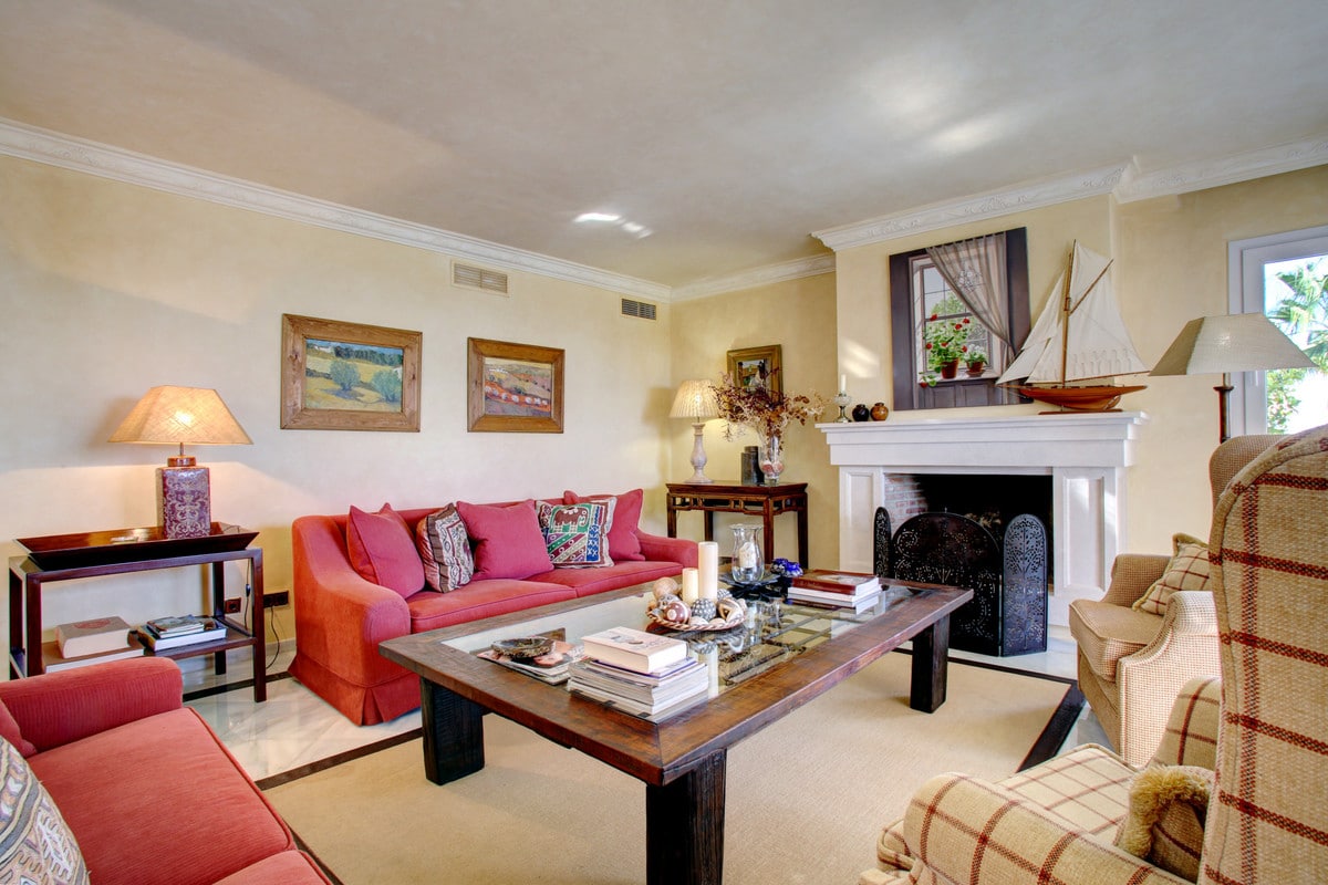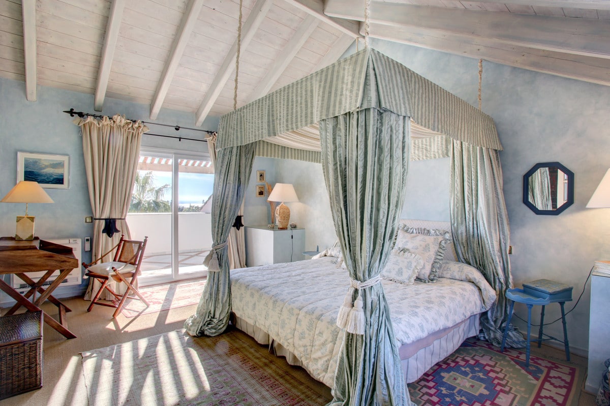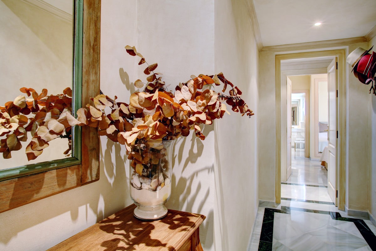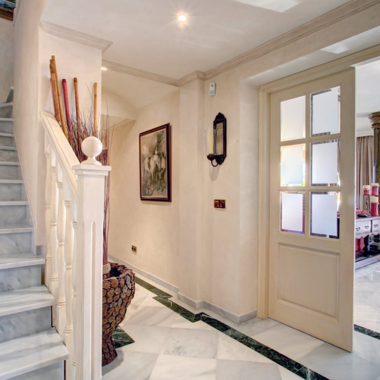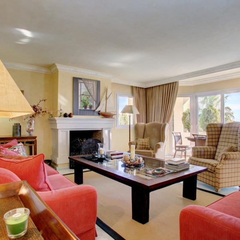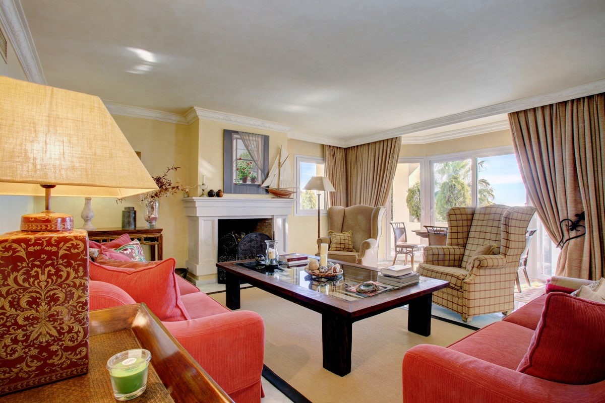 Exceptional four bedroom, south facing duplex penthouse in the exclusive and gated community of Monte Paraiso on the Golden Mile, with 24hr security, several outdoor swimming pools, a bar/restaurant, children’s play area, fully equipped gym, steam room, sauna, squash court, massage room, indoor heated swimming pool and tropical gardens that are maintained to the highest standards. As well as all this it is only a short walk to the famous Puente Romano Hotel and the beach. On the main level is an open plan living and dining area with fireplace and French doors leading out to the large terrace which has amazing panoramic sea views and views of the community; fully fitted kitchen with separate utility room and a small guest/staff suite accessed from the kitchen; two guest suites; and a guest toilet. On the top level is the master suite with vaulted ceilings, a Jacuzzi bath and an area which is currently being used as a salon but could also be used as a dressing room; there is also access from the bedroom to a private terrace which has amazing sea views. Other features include marble floors, hot and cold air conditioning, two parking spaces and a storeroom.