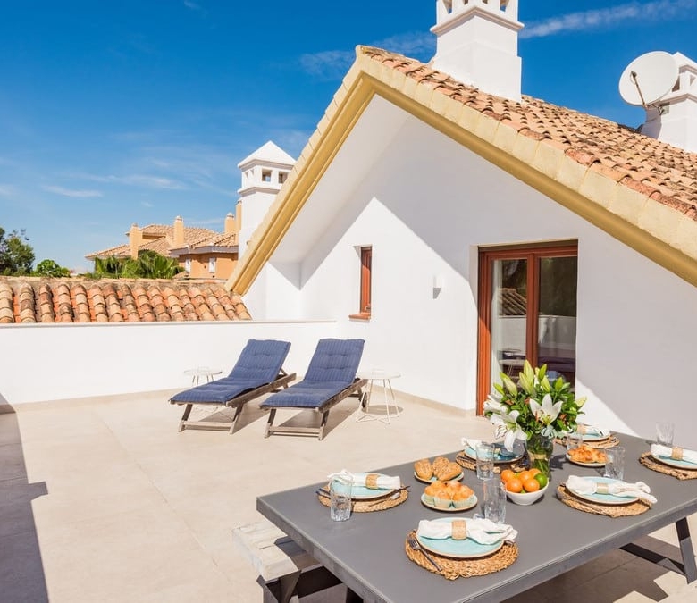 The stunning landscaped terrace, exclusively designed by one of the most prestigious companies in the area, brings life to a relaxed and inviting outdoor lounge, chill out and dining area, perfect for outdoor living at any time of the day, anytime of the year. The terrace is connected to the upstairs ‘all day’ sun terrace from where amazing sunsets can be enjoyed. The garden view from the terraces gracefully blends in with the beautiful and luscious gardens of Lomas del Rey, amazed and admired by many.