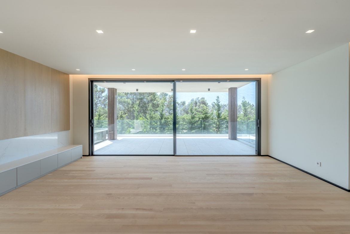 4+1-bedroom villa, 517 sqm (gross construction area), with private garden and swimming pool, under construction, in a gated community of four separate villas, set in a 423 sqm plot of land, in Murches, Cascais. Floor 0 has a 91 sqm living and dining room, American kitchen and guest bathroom. Floor 1 has two suites (37 sqm and 22 sqm). Floor -1 has two suites with direct access to the garden (33 sqm and 22 sqm), 79 sqm multipurpose room and 18 sqm laundry. Underfloor heating throughout the house. Pre-installation for air conditioning. Electric shutters throughout the entire house. 15-minute driving distance from several schools: Colégio Amor de Deus, Escola Salesiana do Estoril, German School (Deutsche Schule Lissabon), SAIS (Santo António International School), TASIS (The American School in Portugal), and CAISL (Carlucci American International School of Lisbon). 10-minute driving distance from the historic centre of Cascais, Cascais Marina, Guincho beach, Cascais bay beaches, Malveira da Serra, and Serra de Sintra. Fast access to the Marginal Road, A5 motorway, and 30 minutes from Lisbon and from Humberto Delgado Airport.