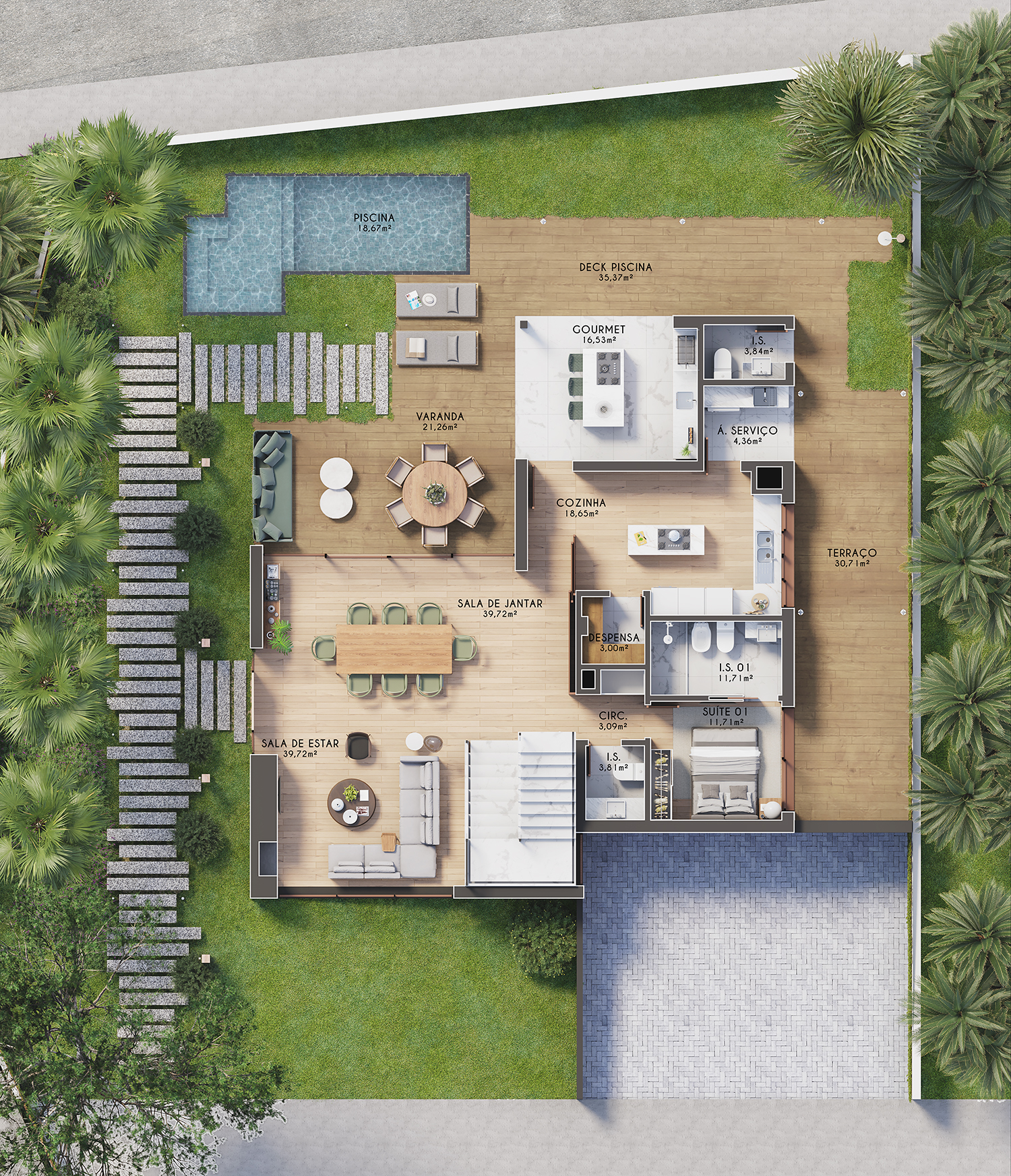 4-bedroom villa, 208.3 sqm (gross construction area), with garden and swimming pool, set in a 454.61 sqm plot of land, in the Estoril Woods gated community, in Estoril. Villa spread over two floors. The ground floor comprises the social area, living and dining room with double height ceiling, with glazed spans and access to the outdoor area; gourmet and dining area next to the swimming pool and changing rooms; A fully equipped kitchen with pantry and separate laundry room; a guest bathroom and a suite. The first floor comprises three suites. The finishes and materials used both outside and in the interiors are of excellent quality.The Estoril Woods is a development located in Estoril, in a residential and quiet area of Livramento, an innovative concept with a project featuring contemporary lines by the Architect Sidney Quintela studio. Each house was designed with all the amenities, in a space created to promote the coexistence of the family and friend gatherings, in a green and peaceful environment. A gated community, set in a 10,000 sqm plot with 12 detached villas with their own garden and swimming pool. The gated community has a club with Gym and Spa and a children’s playground. In terms of security and privacy, the gated community is fenced, has controlled access and 24-hour security service. The predominant feature of the houses is the feeling of space and light, which the wide spans and high ceilings imprint on the interior environments. Surrounded by vegetation and preserving the old trees that already existed, large glazed spans open over a green and restful landscape that invite the outside in.Work completion scheduled for: December 202410-minute driving distance from Escola Salesiana do Estoril, from German School (Deutsche Schule Lissabon) and SAIS (Santo António International School), 15 minutes from Colégio Amor de Deus, from the international schools TASIS (The American School in Portugal) and CAISL (Carlucci American International School of Lisbon), and from St. Julian’s School. 5-minute driving distance from Estoril Golf Club, CTE (Estoril Tennis Club), 10-minute driving distance from the Cascais Marina, Quinta da Marinha Golf Course, CUF Cascais, Cascais Hospital, and CascaiShopping. Estoril is 15 minutes from the centre of Sintra and 30 minutes from Lisbon Airport.