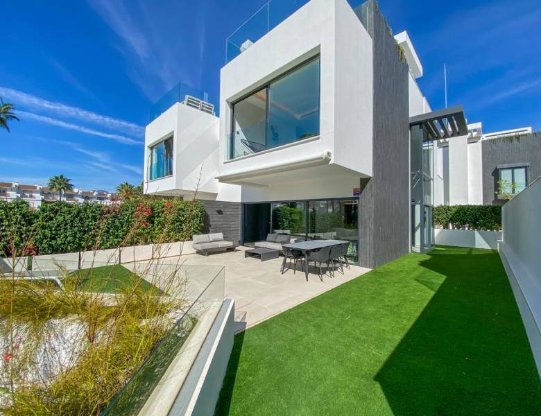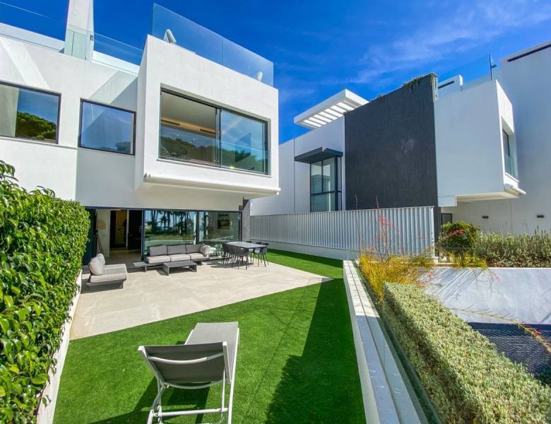 Incredible beachside property located in Estepona This exclusive property consists of 4 bedrooms and 3 bathrooms. The house features a large open-concept kitchen / living space. The property has great views of mountains, the sea as well as the incredible pool in the urbanisation. Layout: Ground floor features 1 bedroom, 1 bathroom, open-concept kitchen / living space as well as a lovely private garden. Sea views. First floor features 2 bedrooms, 1 bathroom, master bedroom with en-suite bathroom and walk in closet. Sea & mountain views. Top floor features a large, partly covered rooftop terrace, with built-in barbecue and a jacuzzi. Panoramic sea & mountain view. Underground there is a big, private parking and an additional room which is used for storage. Excellent security within this completely gated community. Area Built 253 M Terrace 0 M Plot 72 M * * OrientationSouth * Condition Excellent * Pool Communal * Climate Control Air Conditioning * Views Sea Panoramic Garden * Features Covered Terrace Fitted Wardrobes Private Terrace Storage Room Utility Room Ensuite Bathroom * * KitchenFully Fitted * * GardenCommunal * * Security Gated Complex 24 Hour Security * Parking Underground Garage
