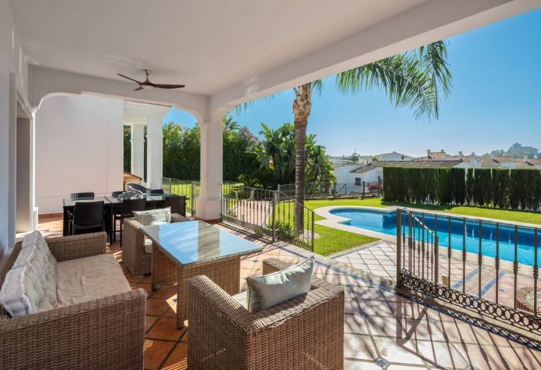 Another Asset Folio Exclusive Spectacular villa in the heart of Paraiso Alto. Distributed over three levels, the villa comprises, on the entrance level; a large dining room and living room, spacious kitchen featuring a large central island and incorporating a breakfast area benefitting from the natural light of the bay windows and views of the banana trees. The entrance hallway has access to the guest toilet and to the two generous guest bedrooms sharing one bathroom. Terrace access is from the living room and leads down to the pool area beyond. Upstairs, we find the third large guest bedroom with en-suite bathroom featuring a double basin, a full jacuzzi bath as well as a large standalone walk-in shower. The master bedroom suite is a real highlight , being very generously sized and featuring a walk-in dressing room as well as a very large bathroom with double basin, jacuzzi bath and walk-in shower. On the lower level is the large double garage along with the laundry room and two storage rooms, with an additional external storage room for garden equipment etc. In addition to the garage, the entrance drive incorporates a turning circle with ample parking space The interior fittings of the property are of very high quality with air conditioning throughout, underfloor heating, travertine marble in the bathrooms etc. The property is set on a large 1800m2 plot allowing for ample garden space as well as the large pool and surrounding area Area Built 524 M Terrace 100 M Plot 1762 M * * OrientationSouth * Condition Good * Pool Private * Climate Control Air Conditioning * Views Sea Garden * Features Covered Terrace Fitted Wardrobes WiFi Storage Room Ensuite Bathroom Marble Flooring * * FurnitureOptional * * KitchenFully Fitted * * Garden Private Landscaped * Security Entry Phone Alarm System