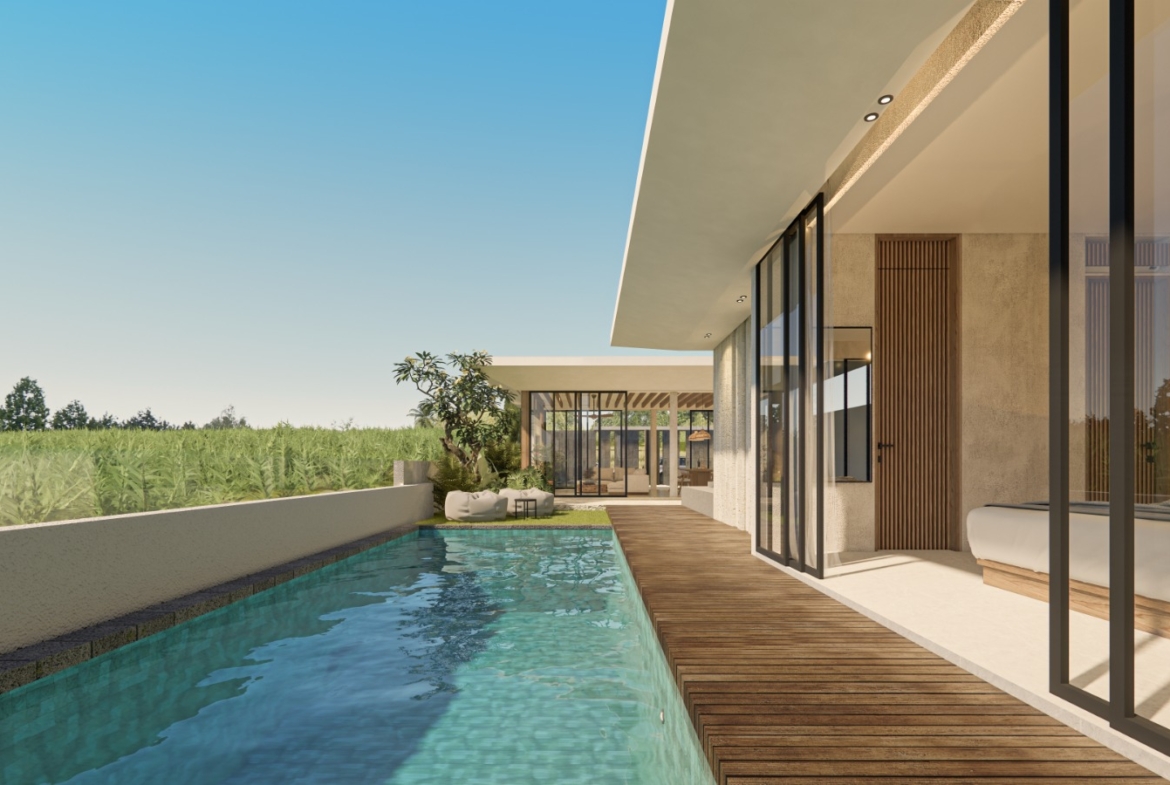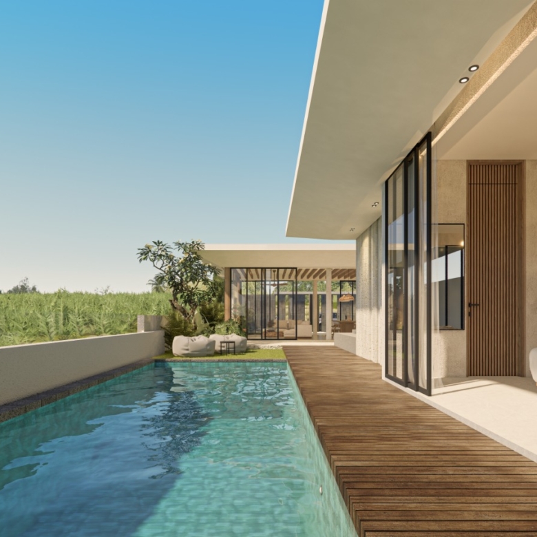 Surrounded by endless rice fields and lush greenery, this modern four-bedroom villa estate in Tumbak Bayuh captures the essence of Bali’s serene living. With 428 m² of stylish interiors, a rooftop lounge, and a private pool, this home is built for both comfort and sophistication. Just 10 minutes from Pererenan Beach and close to cafés, schools, and supermarkets, it’s the ideal blend of privacy, accessibility, and investment value.