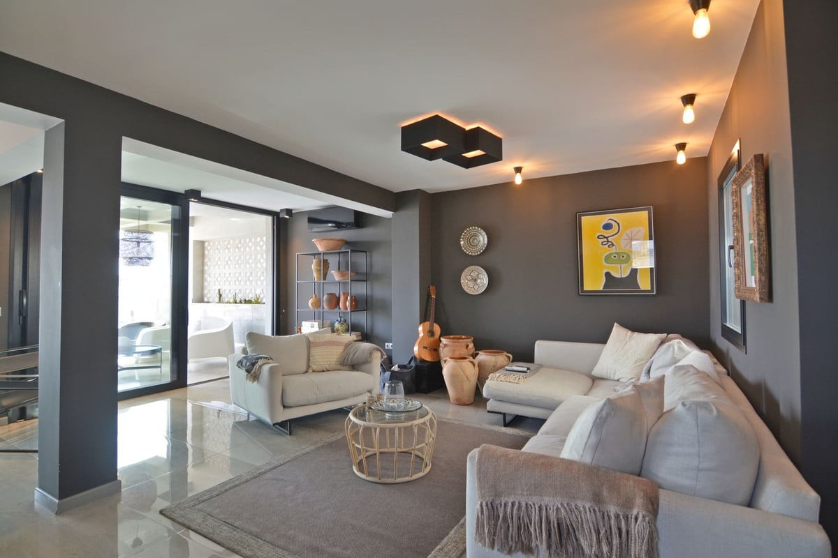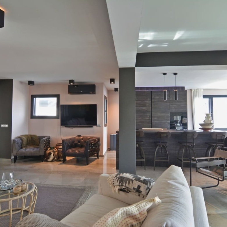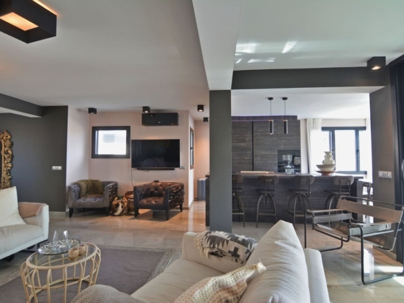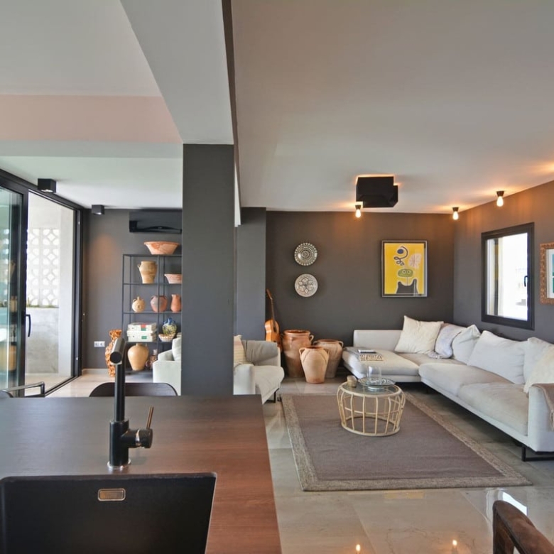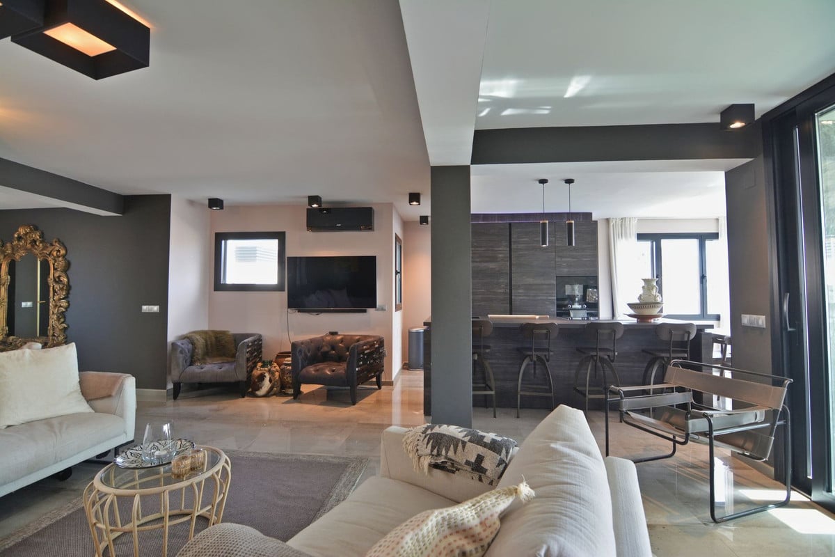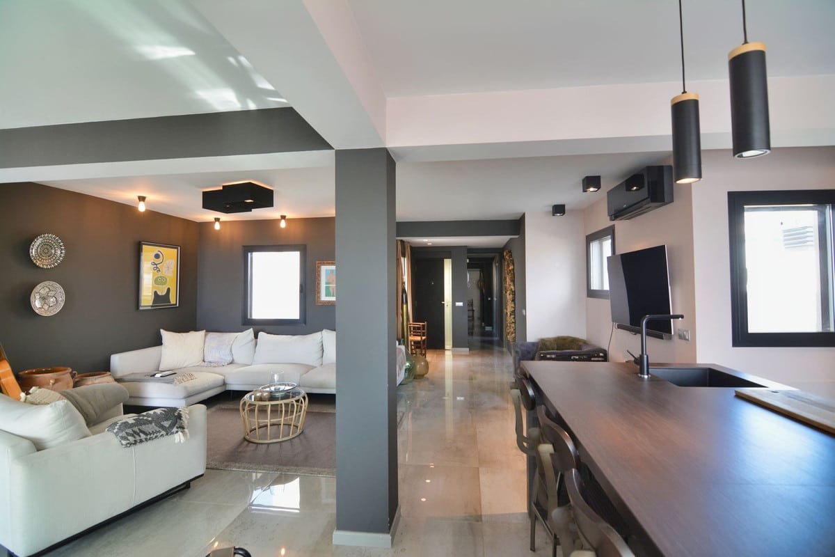 From the living room you can access to a beautiful south-facing terrace with views over the city of Fuengirola and a bit of the sea.