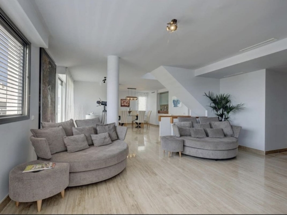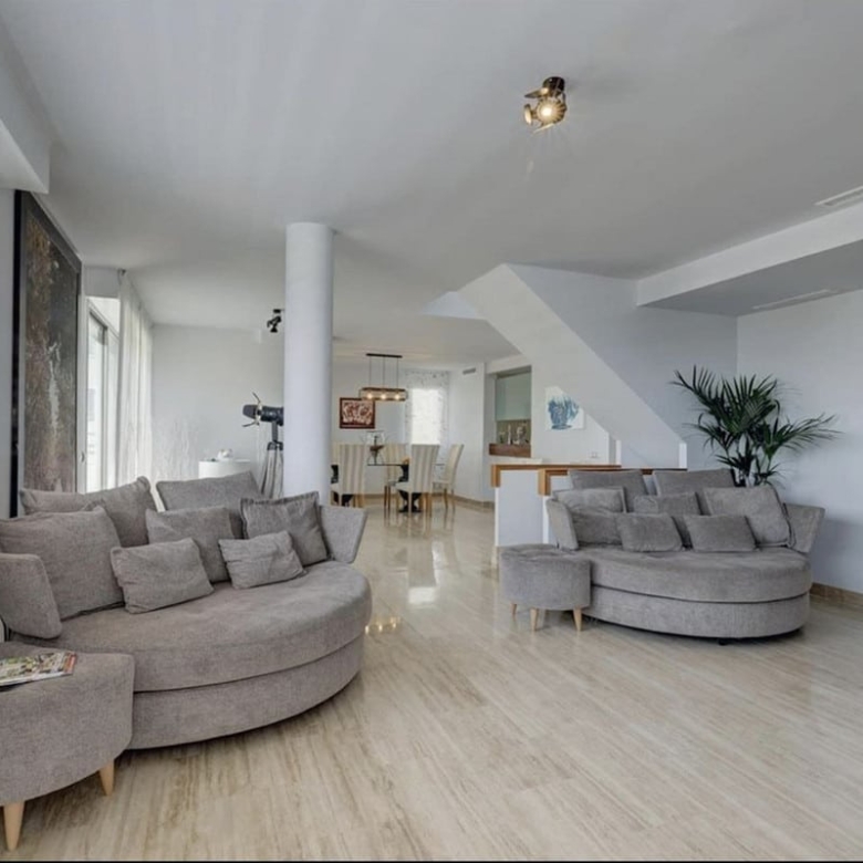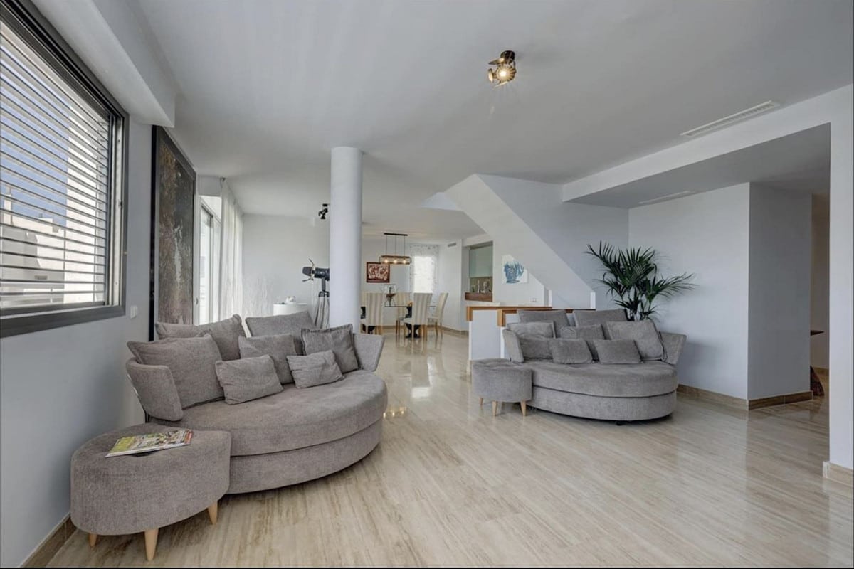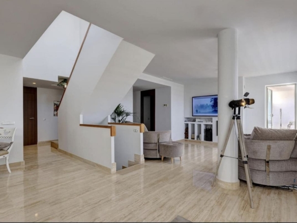 immaculate throughout, this penthouse offers modern comforts like centralized air conditioning (hot and cold), adjustable for each room, underfloor heating in the bathrooms, two underground parking spaces, and two storage rooms. The secure, gated community is equipped with newly installed CCTV and offers two stunning pool areas for residents to enjoy.