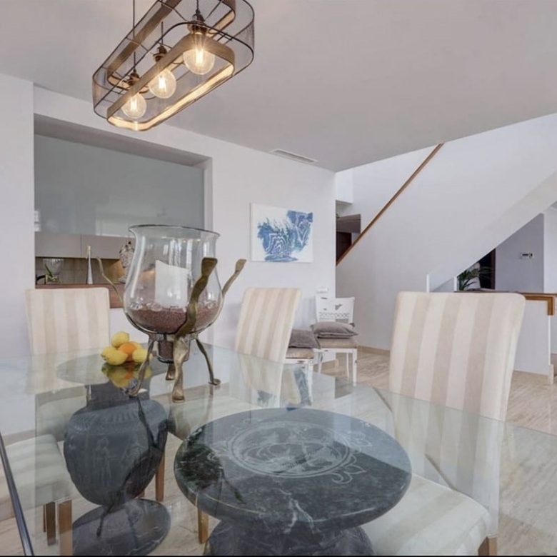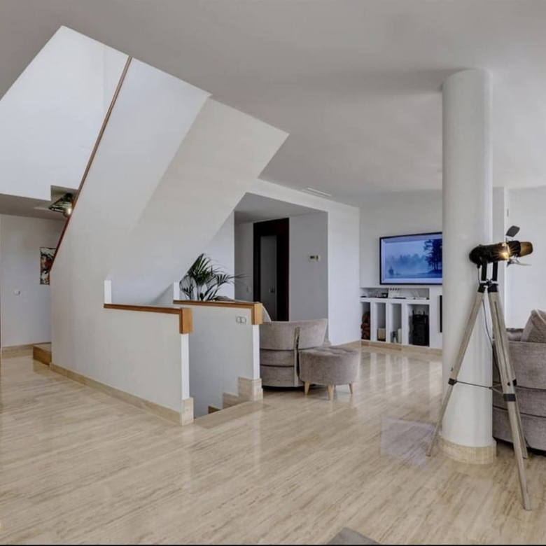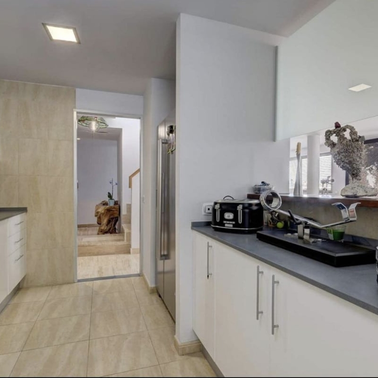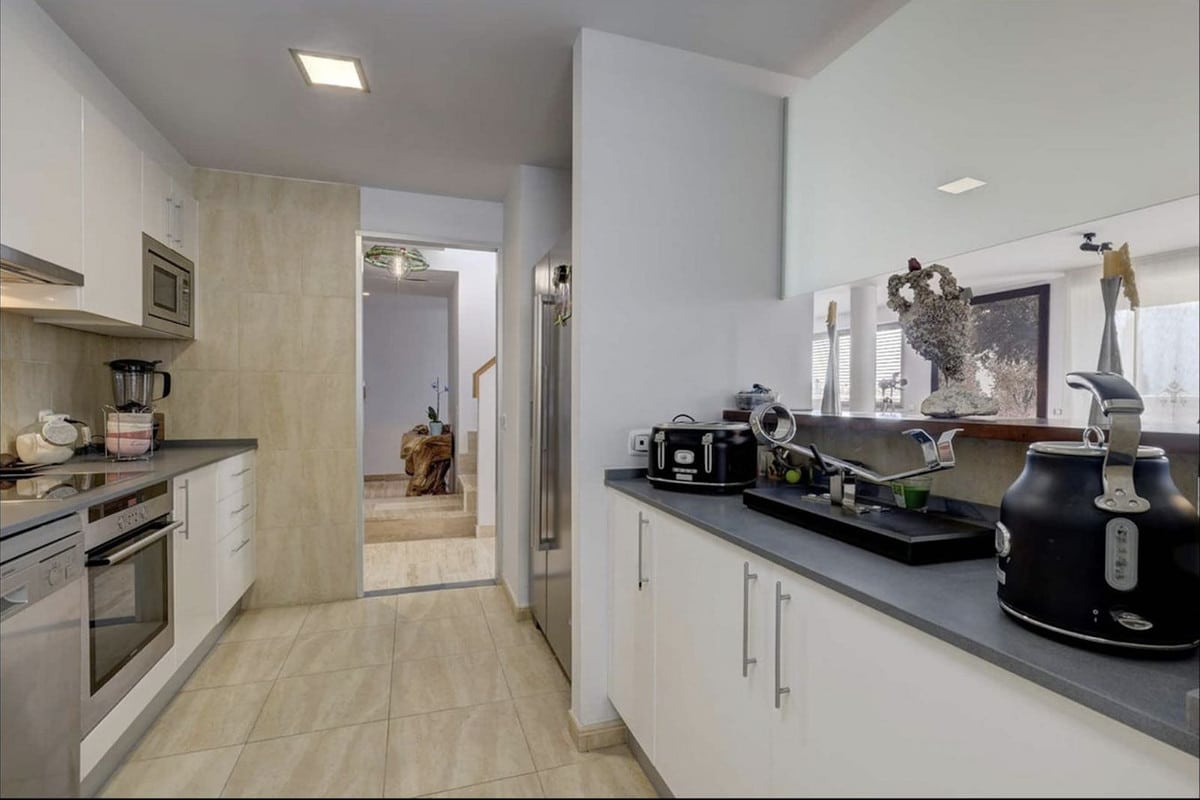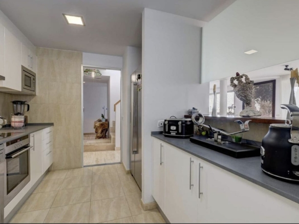 On the lower level, you’ll find four generously sized bedrooms, including a master with an en-suite bathroom, along with another bathroom for the remaining bedrooms. The upper level boasts a fantastic rooftop terrace with partial sea views, complete with a jacuzzi—perfect for relaxing in style.