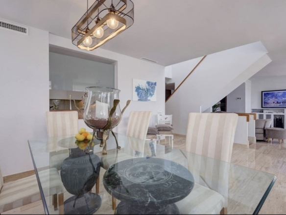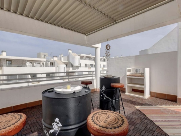 This rare gem on the market is an impeccably presented penthouse apartment, just a 5-minute drive from the picturesque La Cala de Mijas. Spanning three levels, the property welcomes you with an expansive living space that includes a lounge, dining area, separate kitchen, one bedroom, and a bathroom. The lounge features a cozy fireplace and opens onto a south-facing terrace. The abundance of natural light creates a bright and inviting atmosphere throughout the apartment.